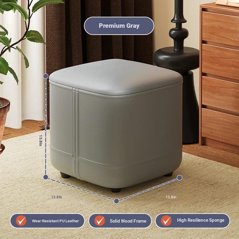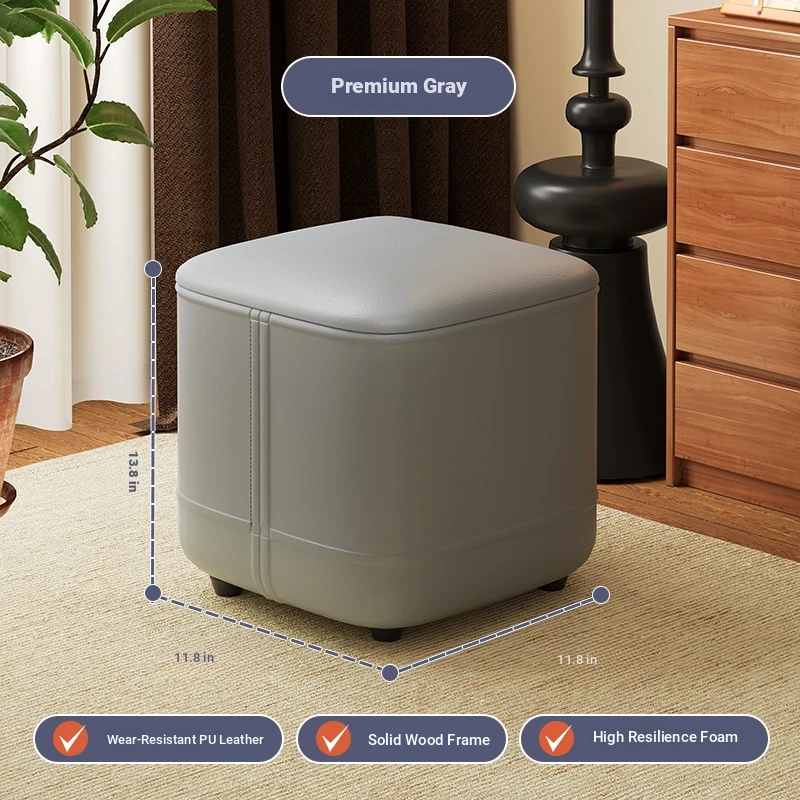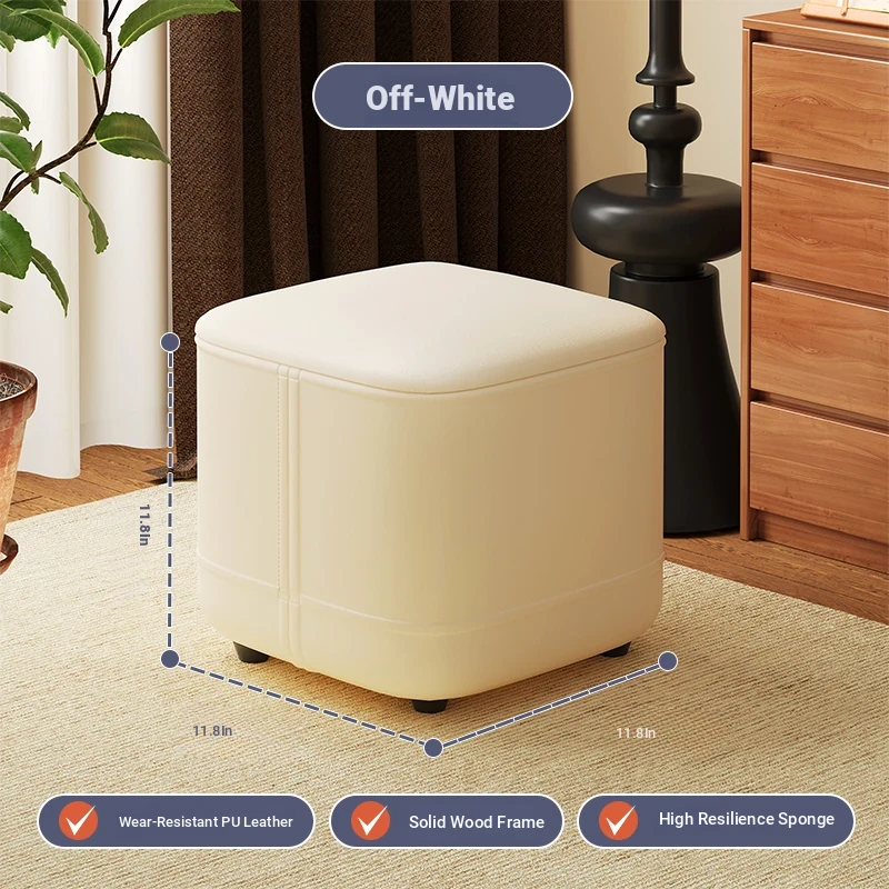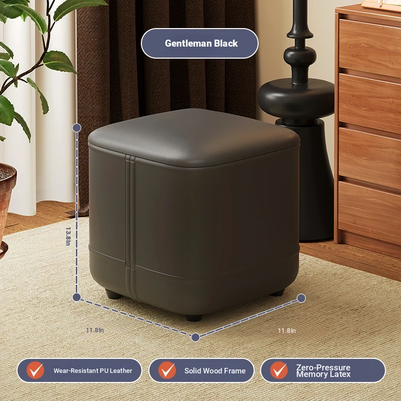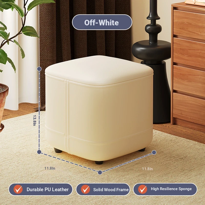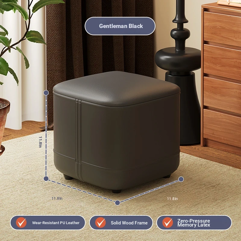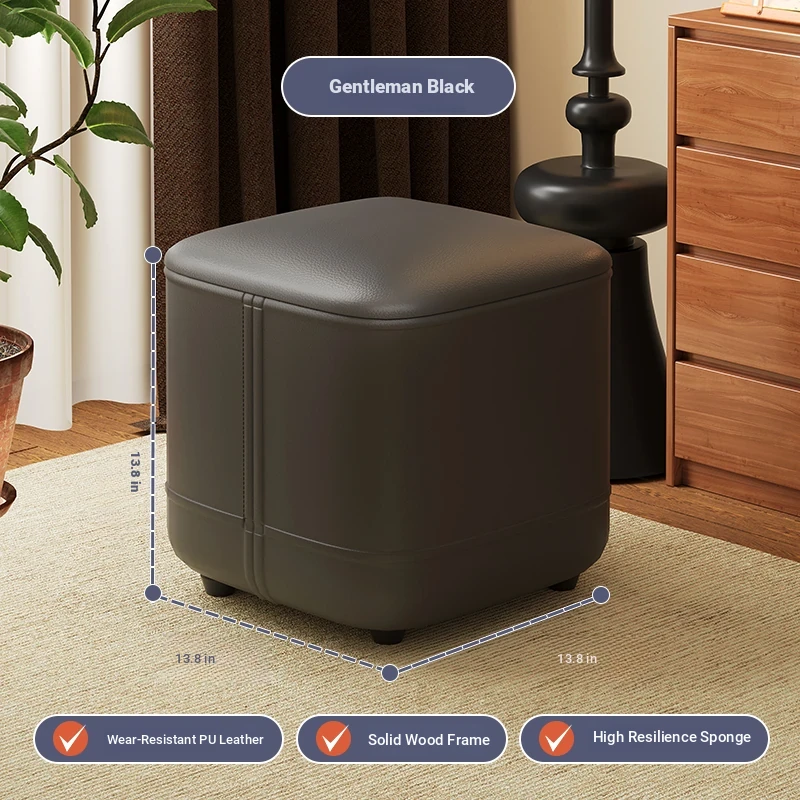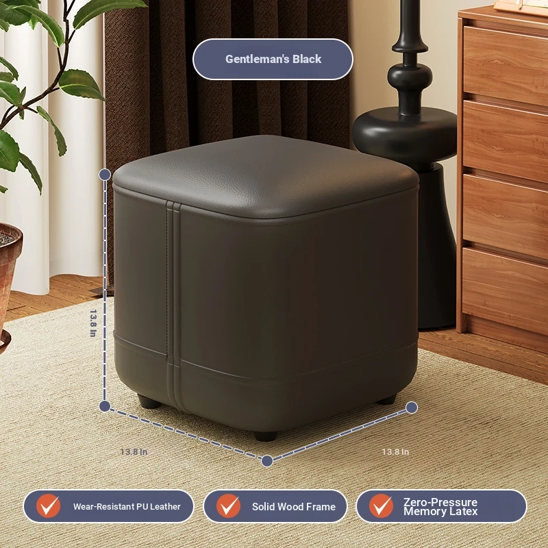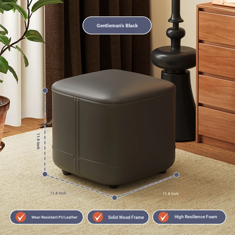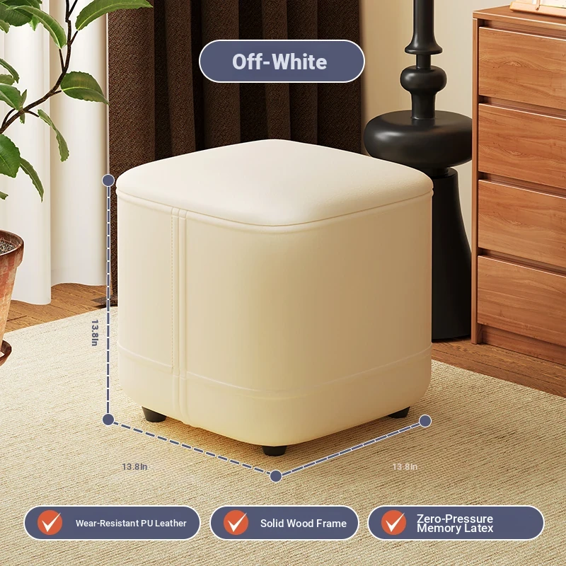 家庭用レザーソファスツール|モダンシンプルなデザイン|リビングにぴったりの小型オットマン|靴を履く時にも便利な柔らかいクッション付きステップスツール