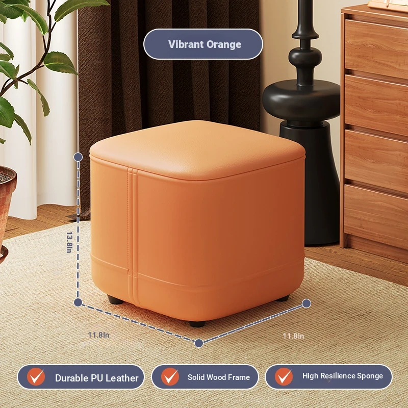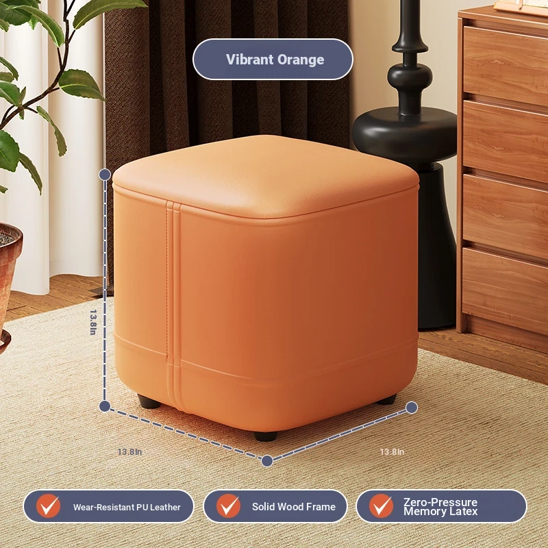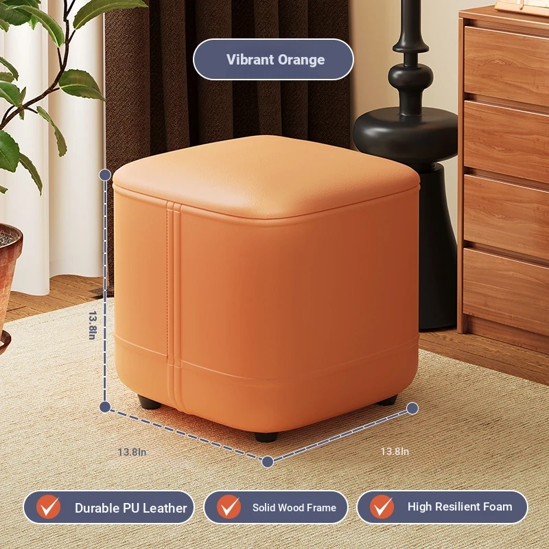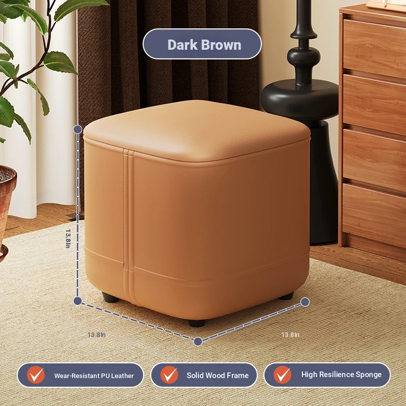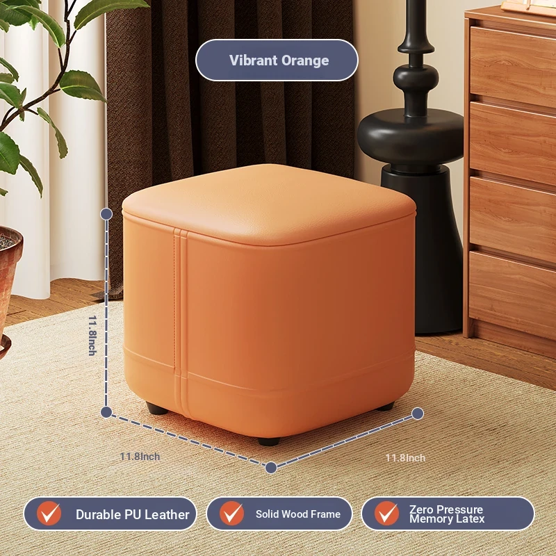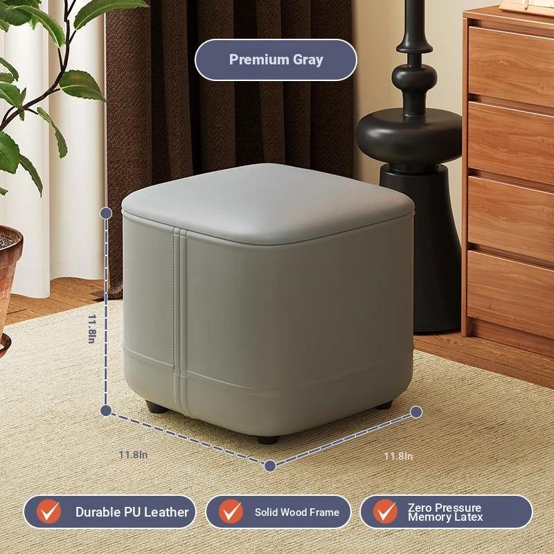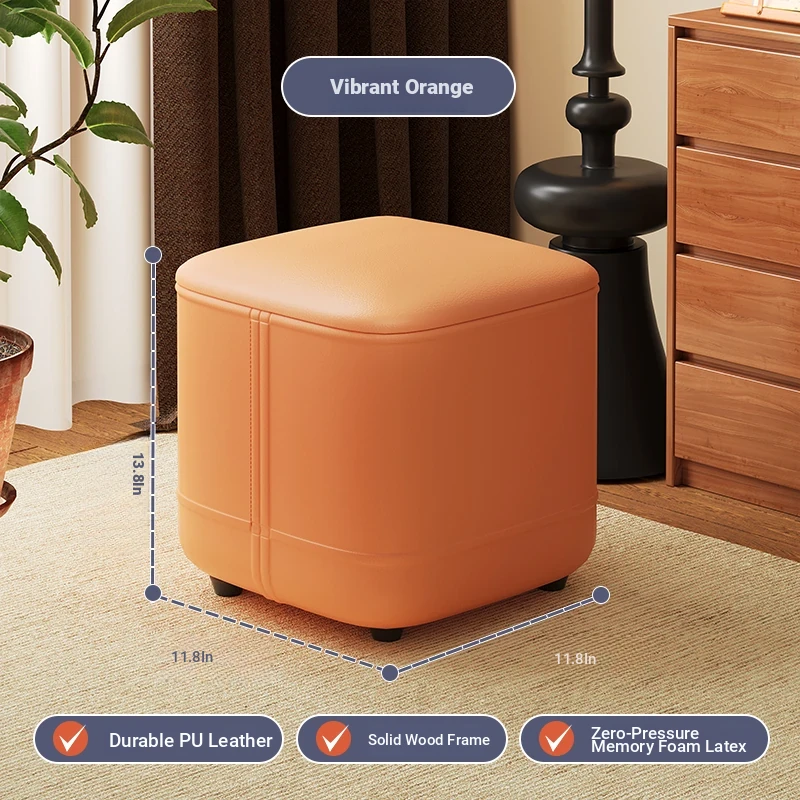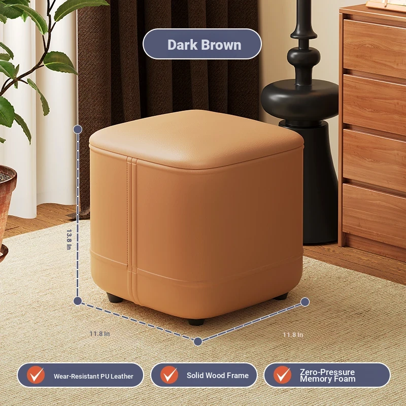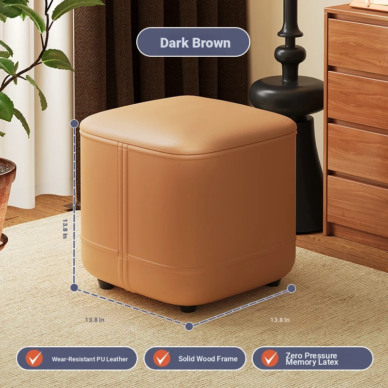 家庭用レザーソファスツール|モダンシンプルなデザイン|リビングにぴったりの小型オットマン|靴を履く時にも便利な柔らかいクッション付きステップスツール