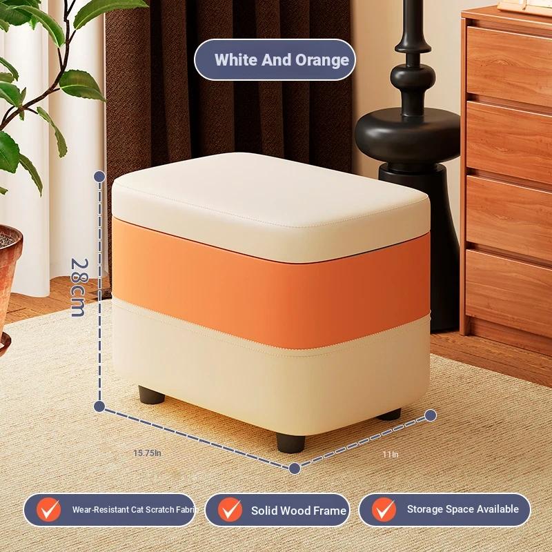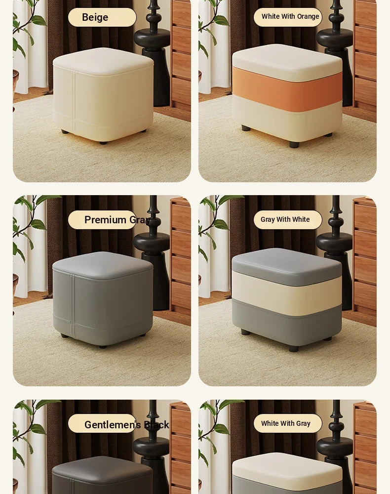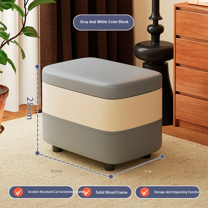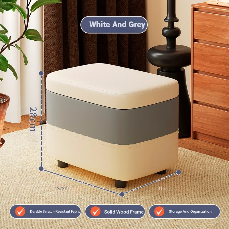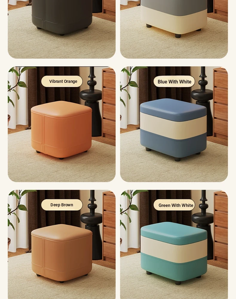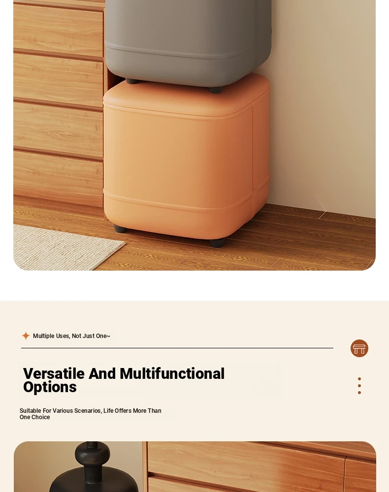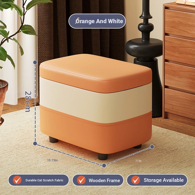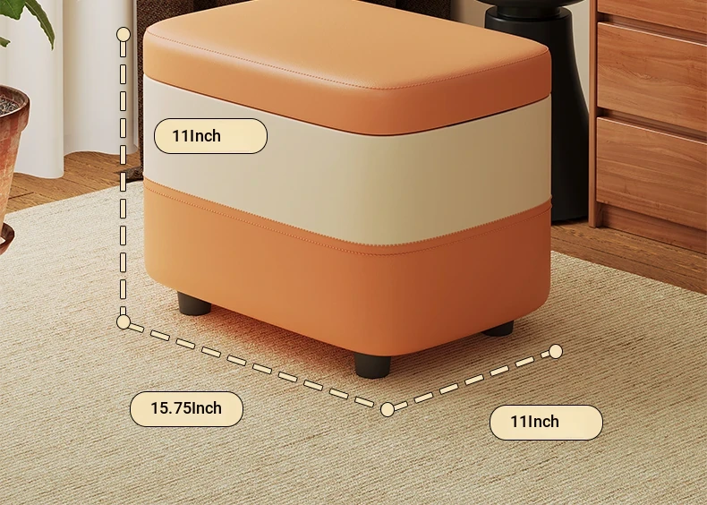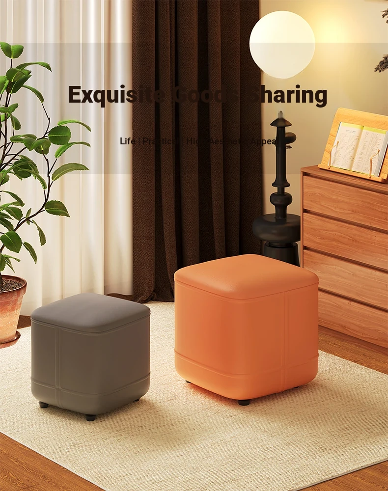 家庭用レザーソファスツール|モダンシンプルなデザイン|リビングにぴったりの小型オットマン|靴を履く時にも便利な柔らかいクッション付きステップスツール