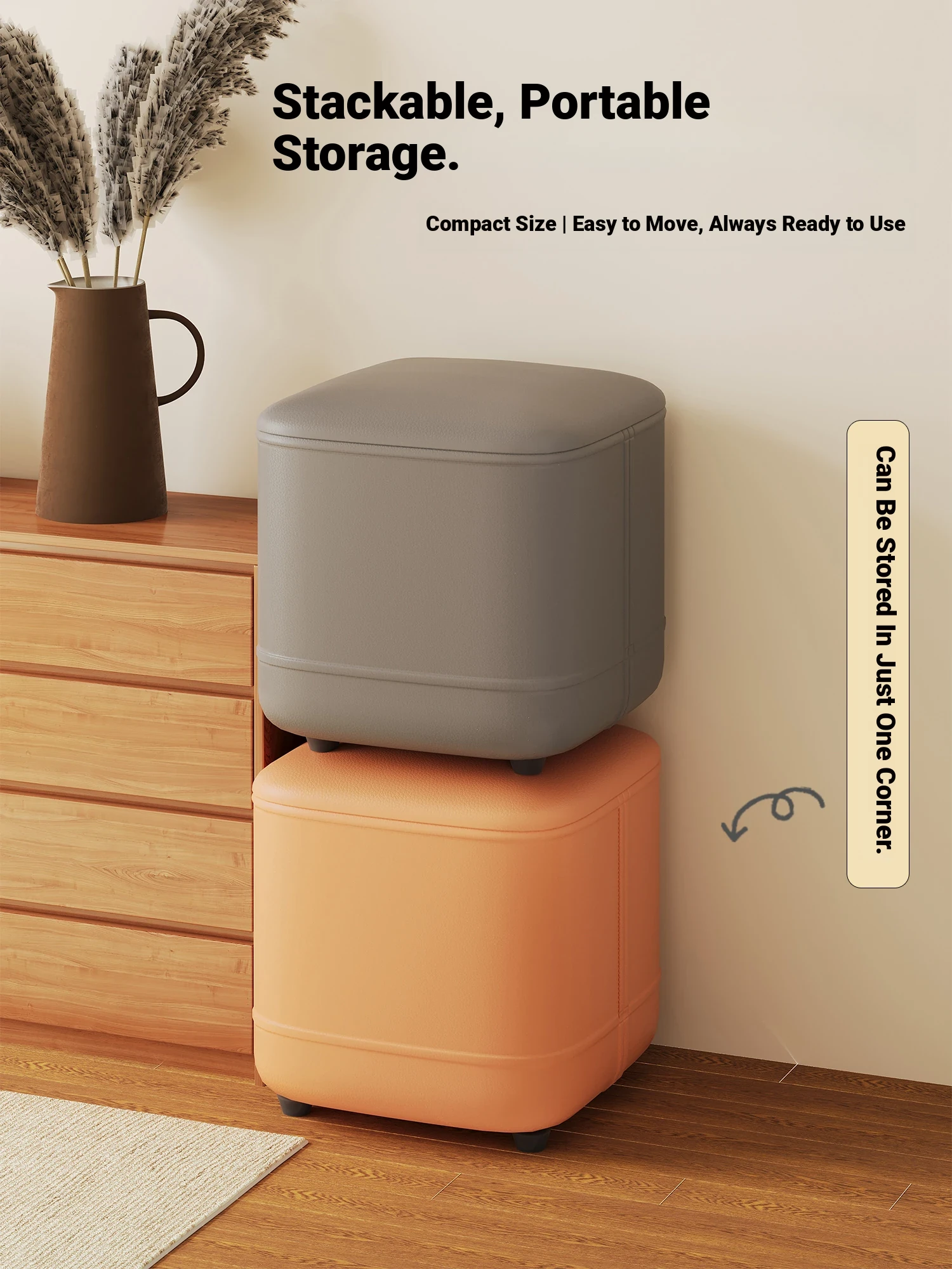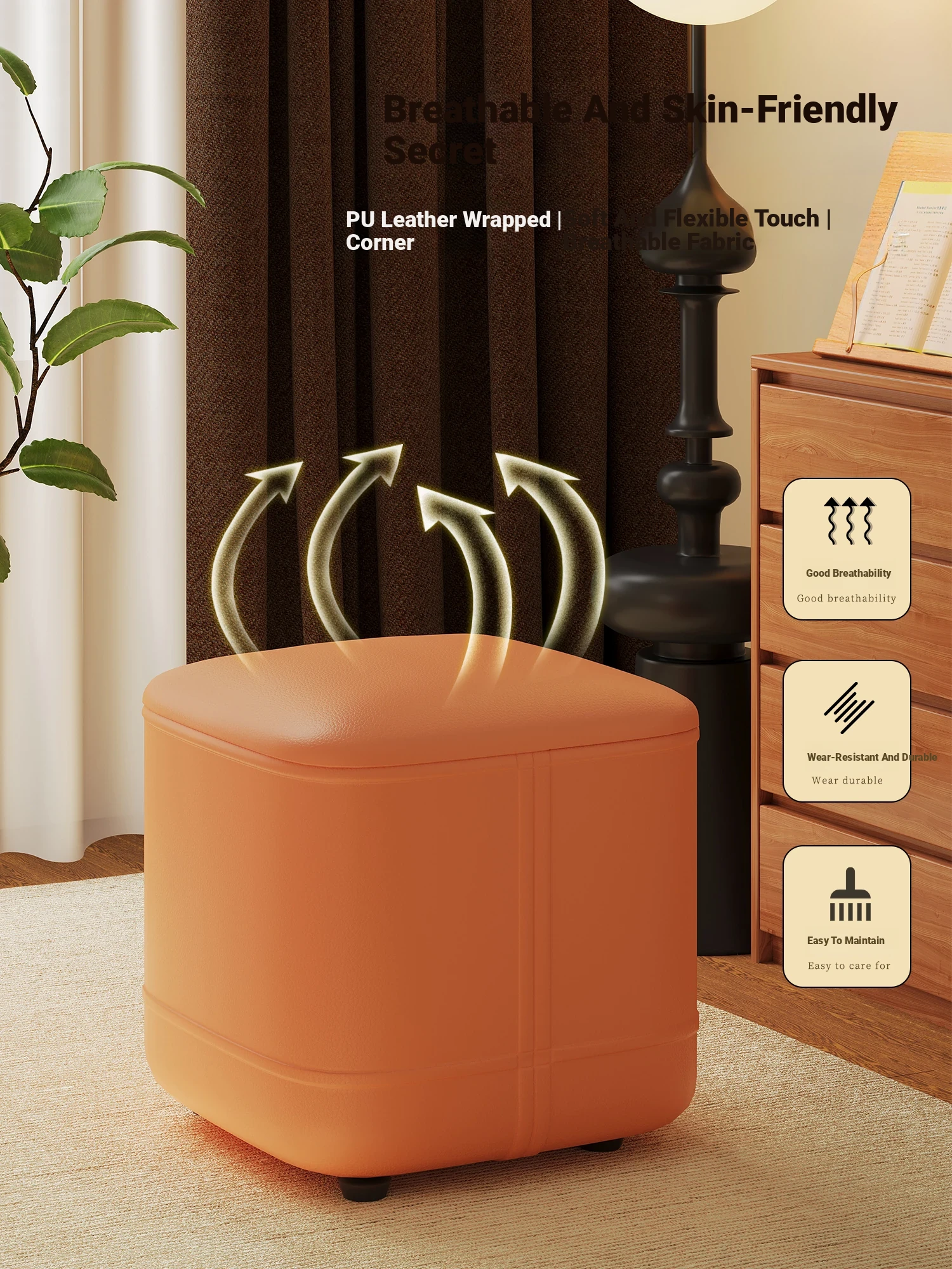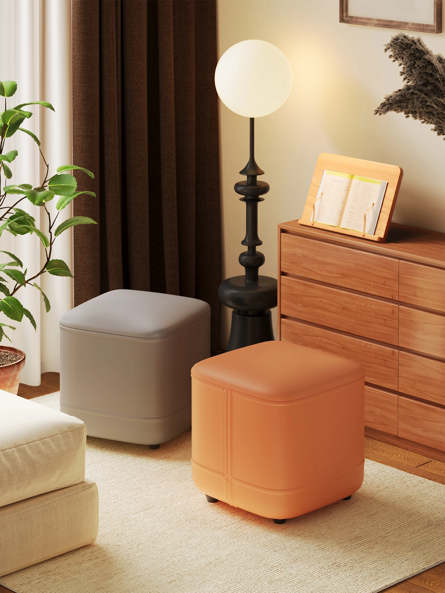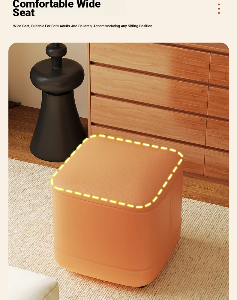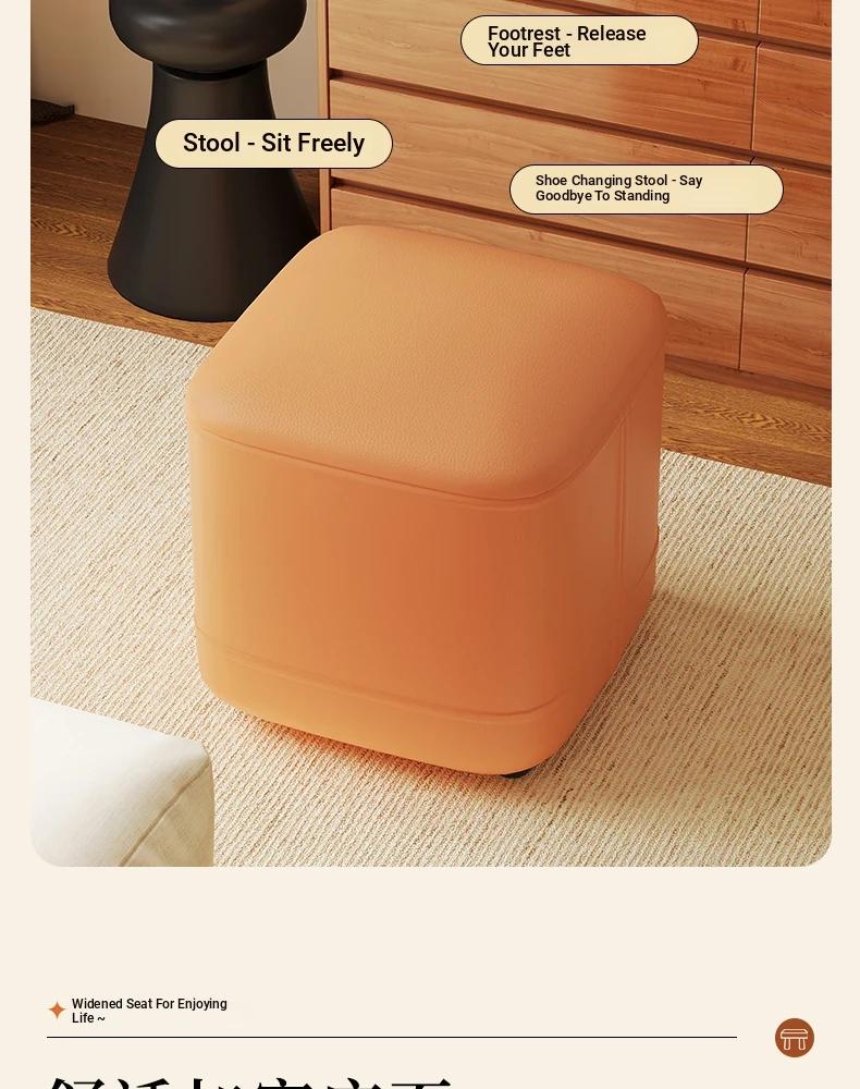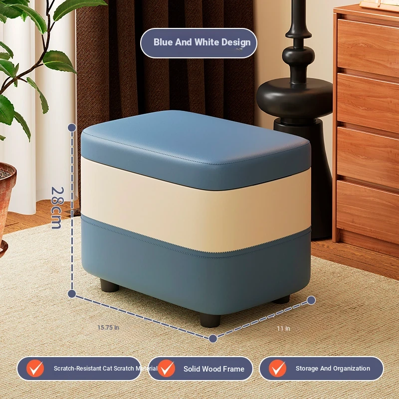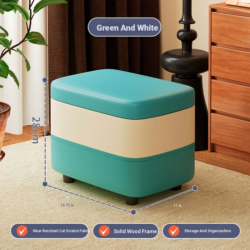 家庭用レザーソファスツール|モダンシンプルなデザイン|リビングにぴったりの小型オットマン|靴を履く時にも便利な柔らかいクッション付きステップスツール