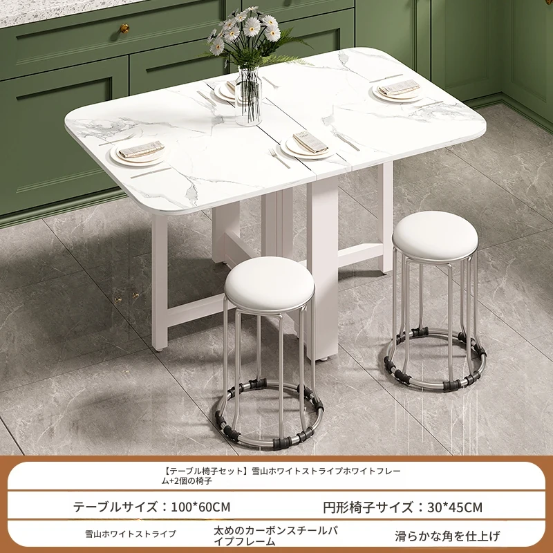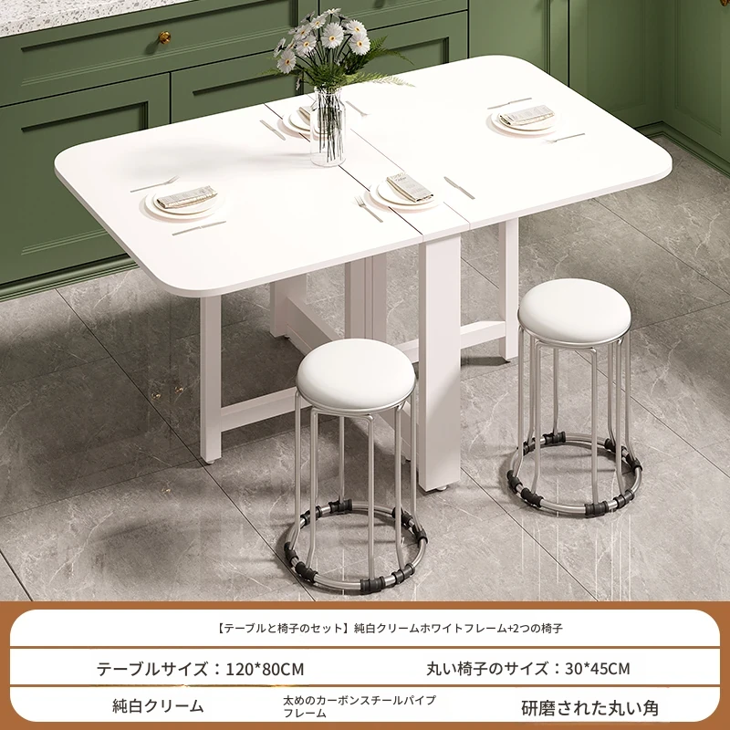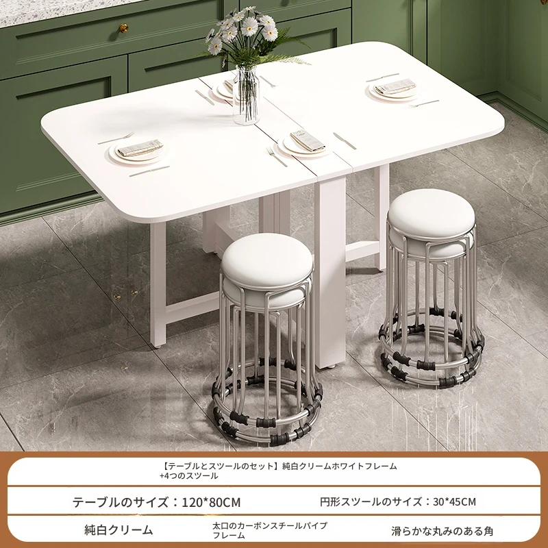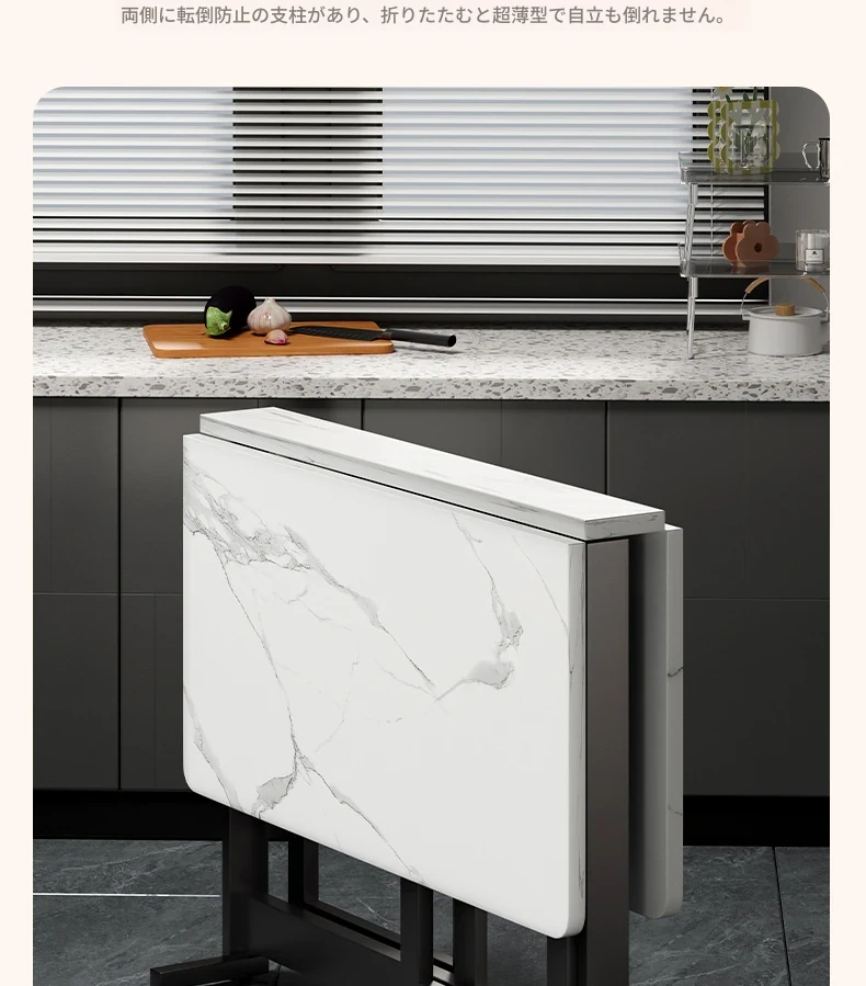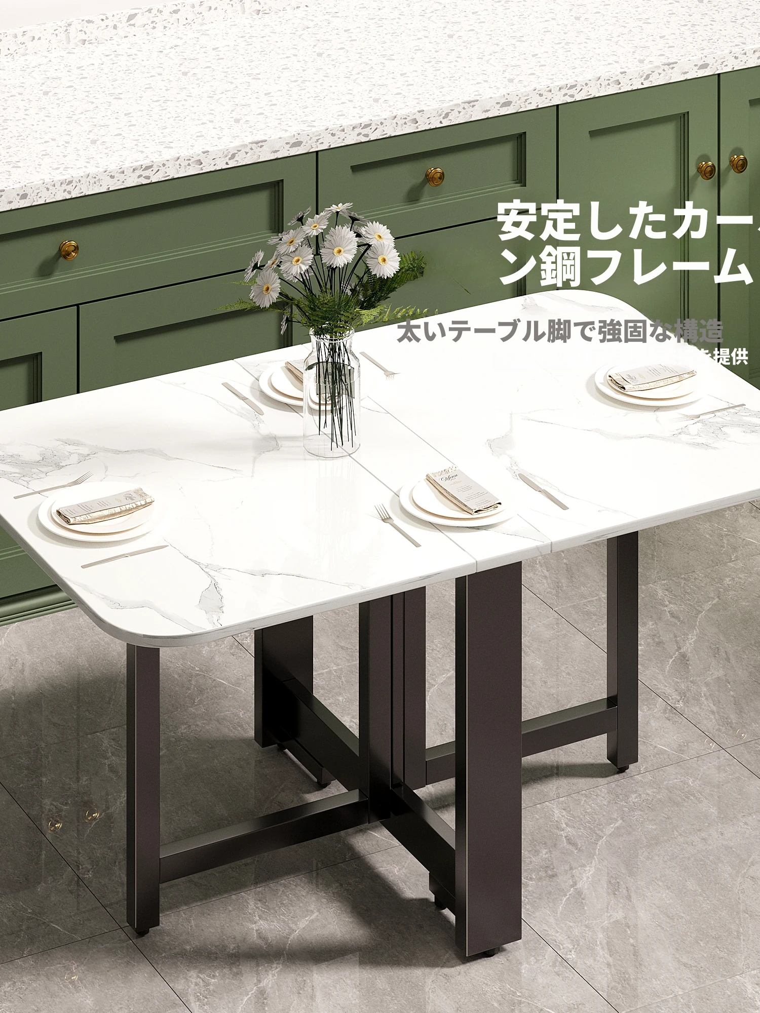 可移動式超薄多機能長方形折りたたみダイニングテーブル - スペースを有効活用し、おしゃれな空間を演出!調整可能なデザインで、どんなシーンにもぴったり。使わない時はサッと折りたたんでコンパクトに収納可能です!