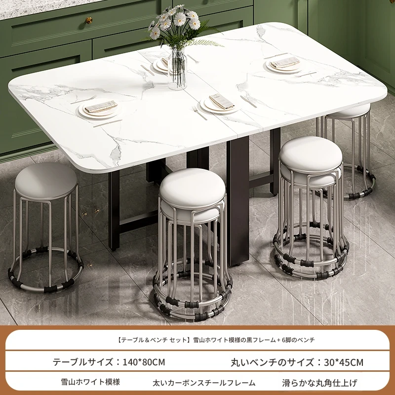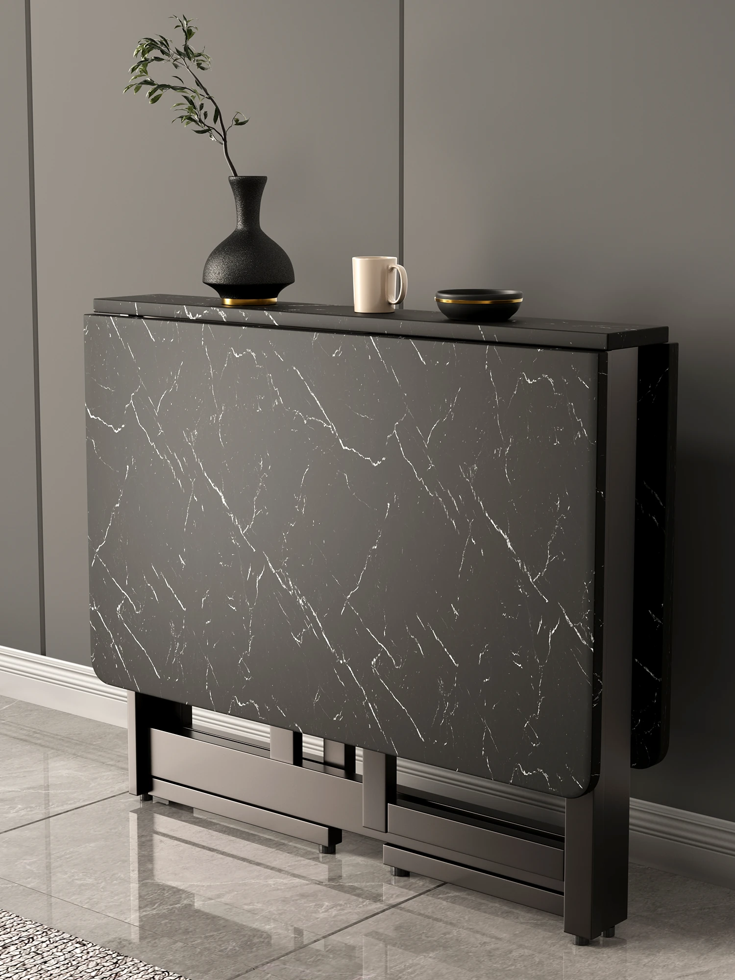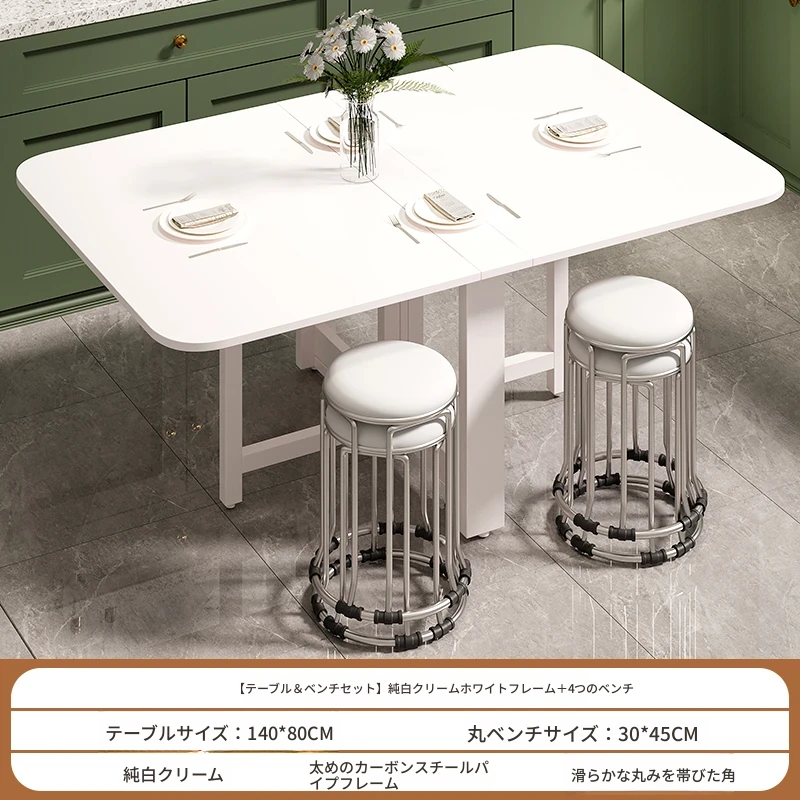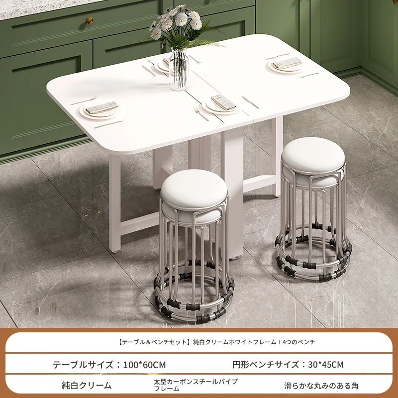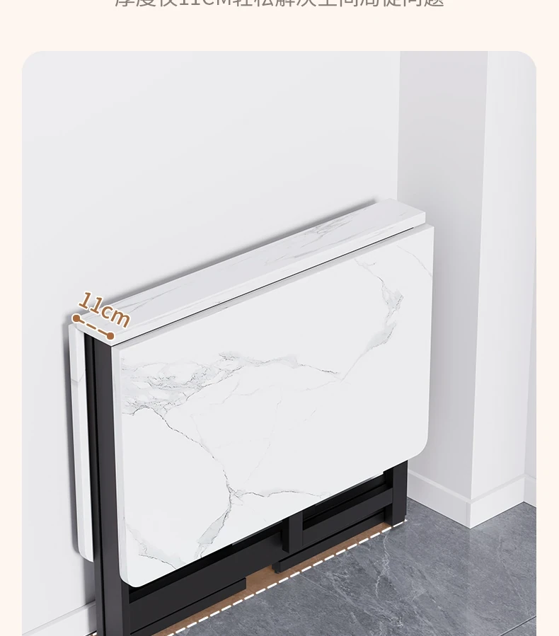 可移動式超薄多機能長方形折りたたみダイニングテーブル - スペースを有効活用し、おしゃれな空間を演出!調整可能なデザインで、どんなシーンにもぴったり。使わない時はサッと折りたたんでコンパクトに収納可能です!