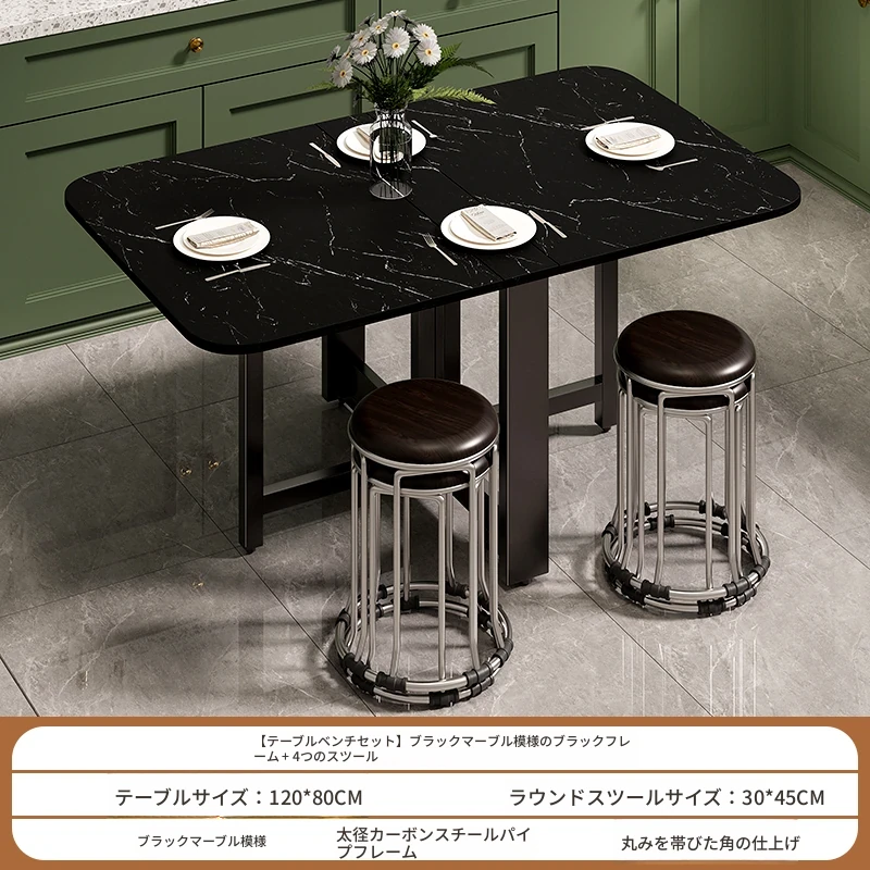 【テーブル椅子セット】120*80ブラック大理石柄ブラックフレーム+4椅子