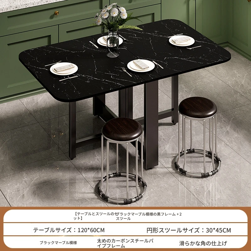 【テーブル椅子セット】120*60ブラック大理石柄ブラックフレーム+4椅子