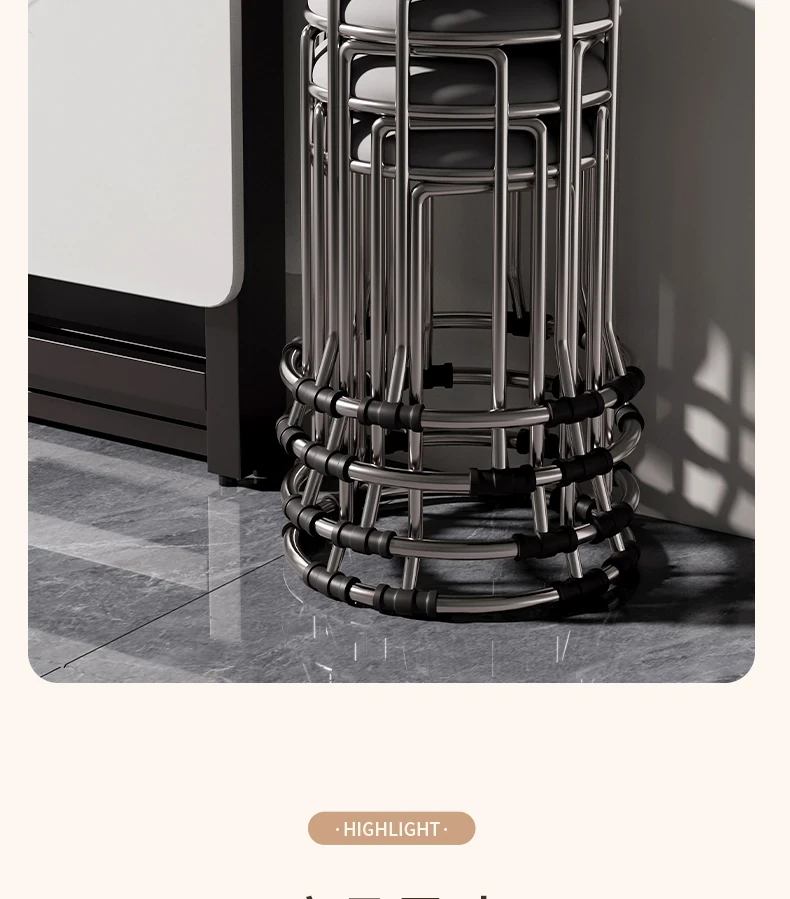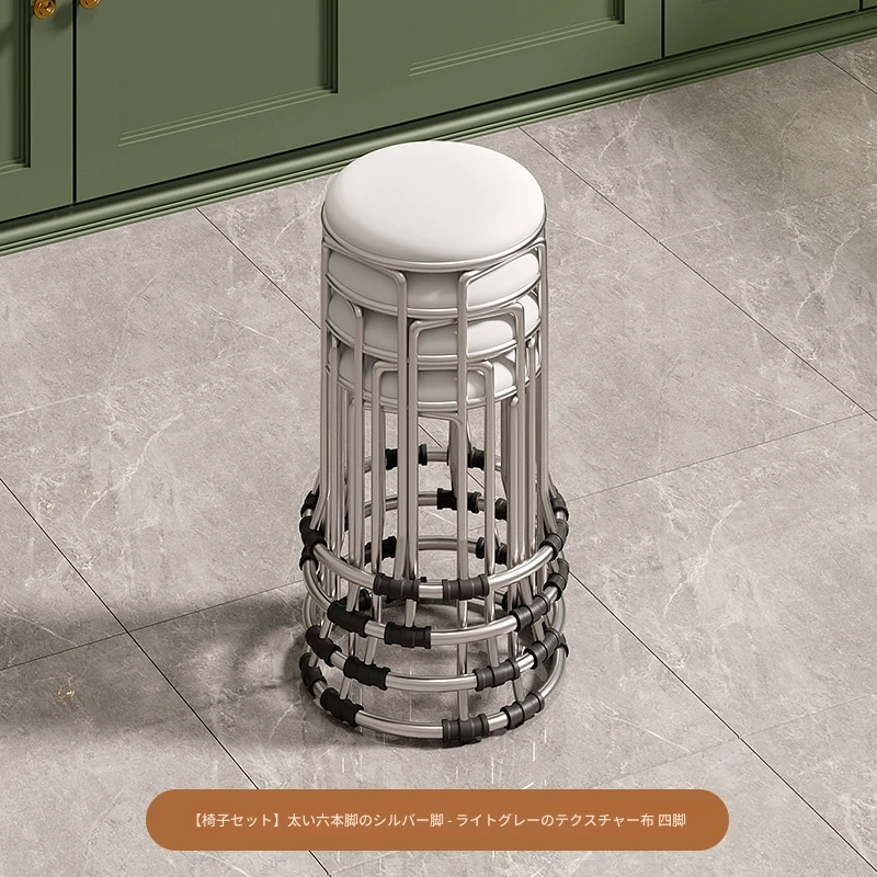 【スツールセット】太い6本脚シルバー脚-ライトグレー科技布4脚