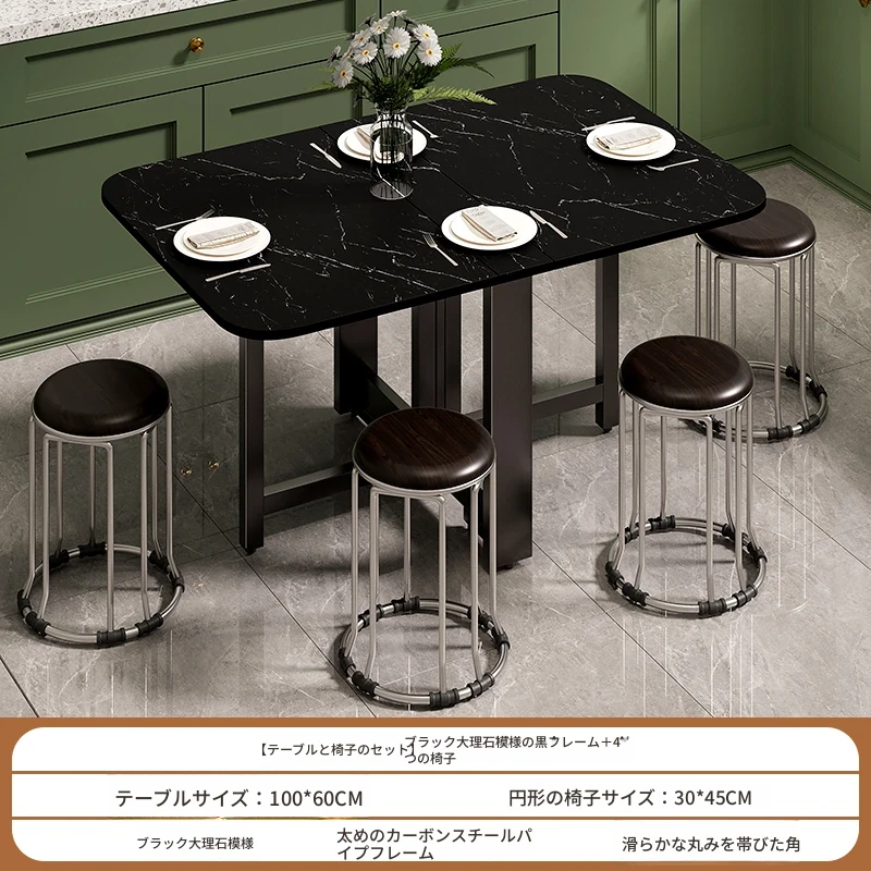 【テーブル椅子セット】100*60ブラック大理石柄ブラックフレーム+4椅子