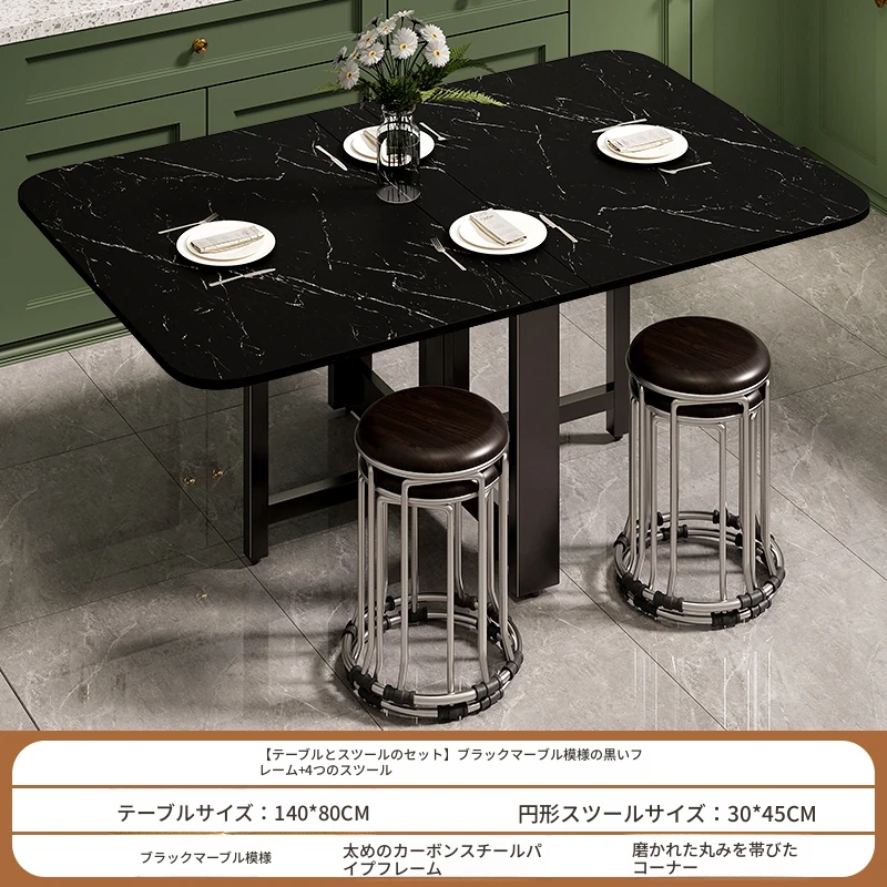 【テーブル椅子セット】140*80ブラック大理石柄ブラックフレーム+4椅子