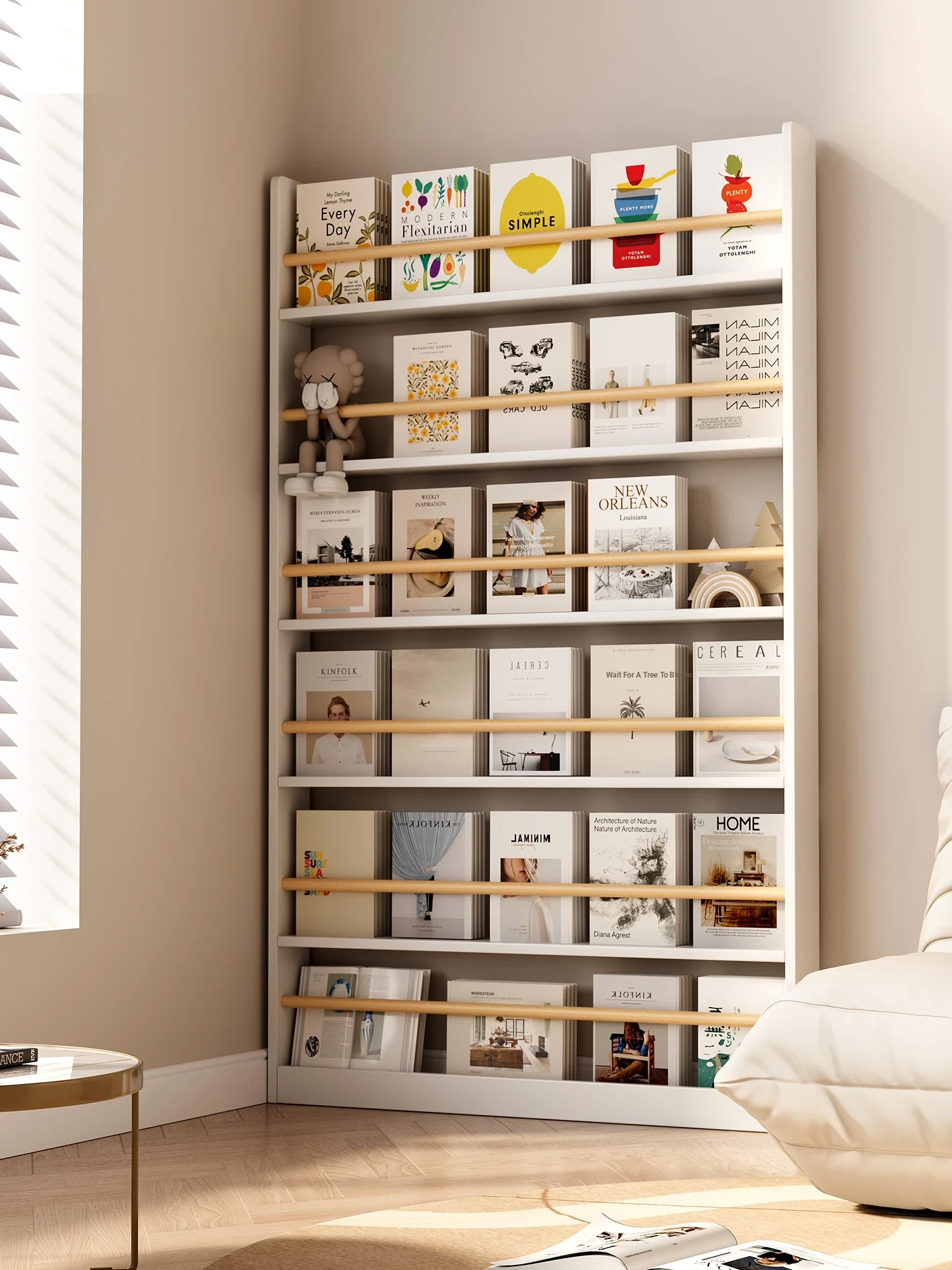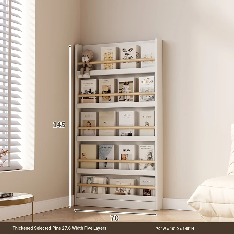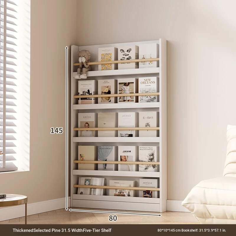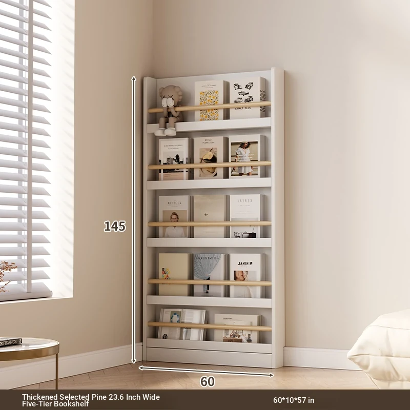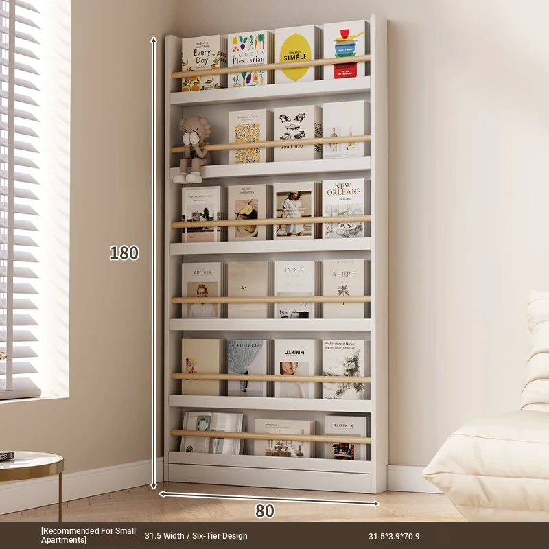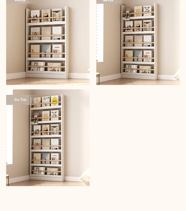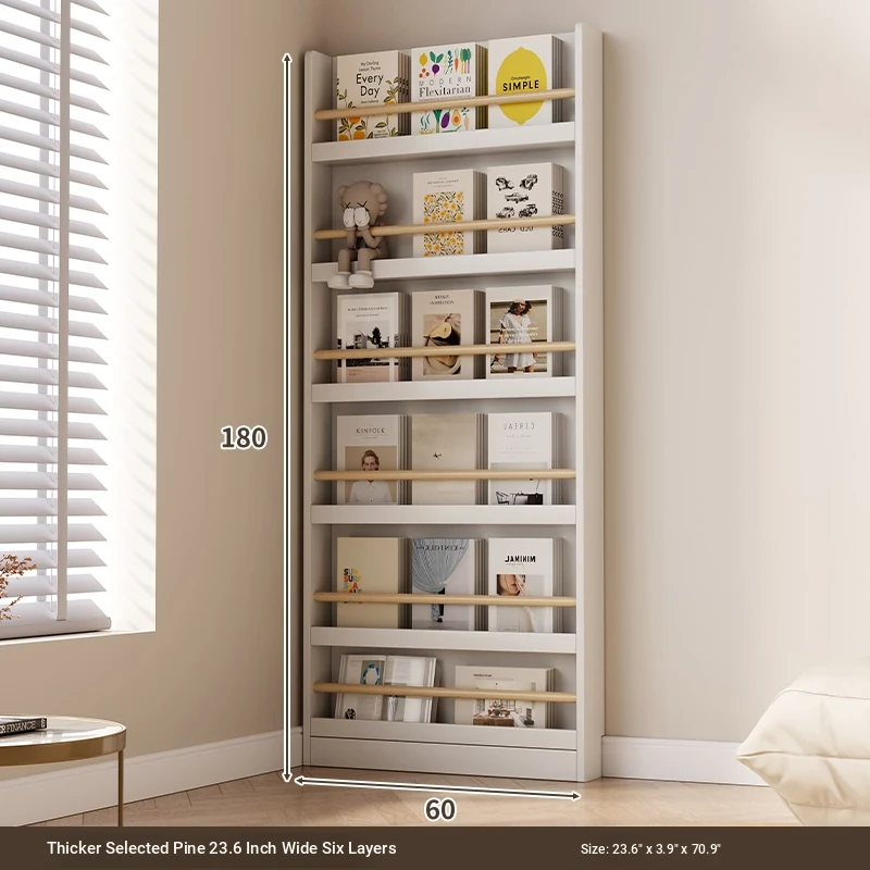 Slim Wall-Mounted Floor Bookshelf: Stylish Wooden Storage Rack for Kids – Space-Saving Multi-Layer Picture Book Organizer for Small Areas, Perfect for Hallways or Behind Doors!