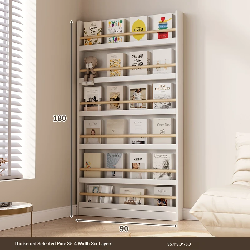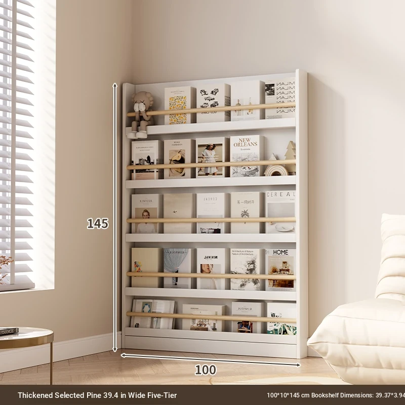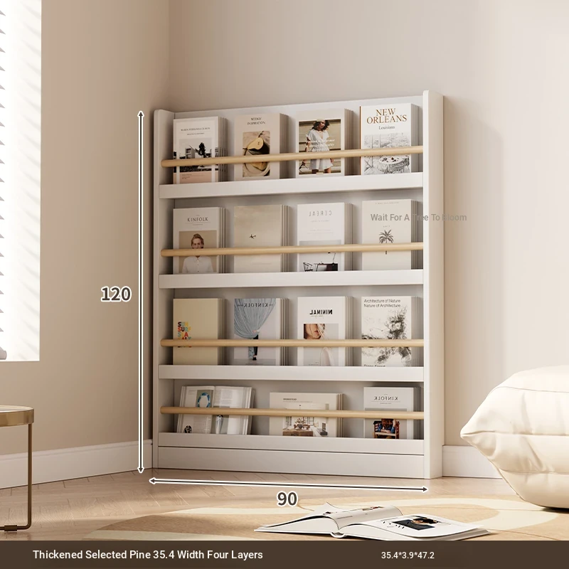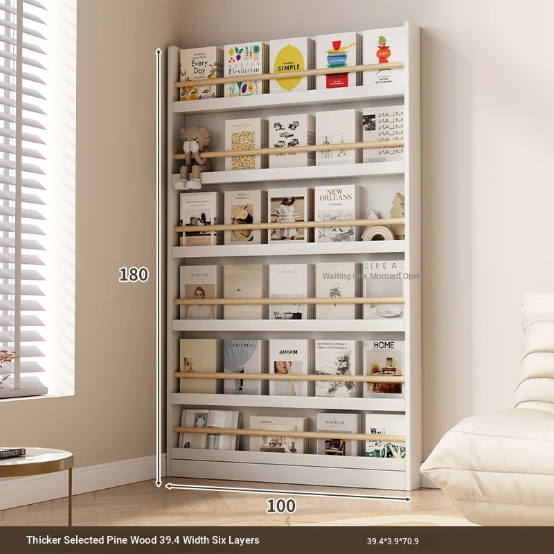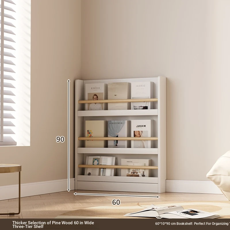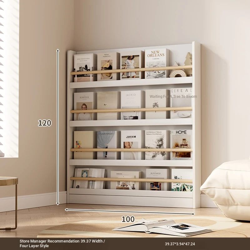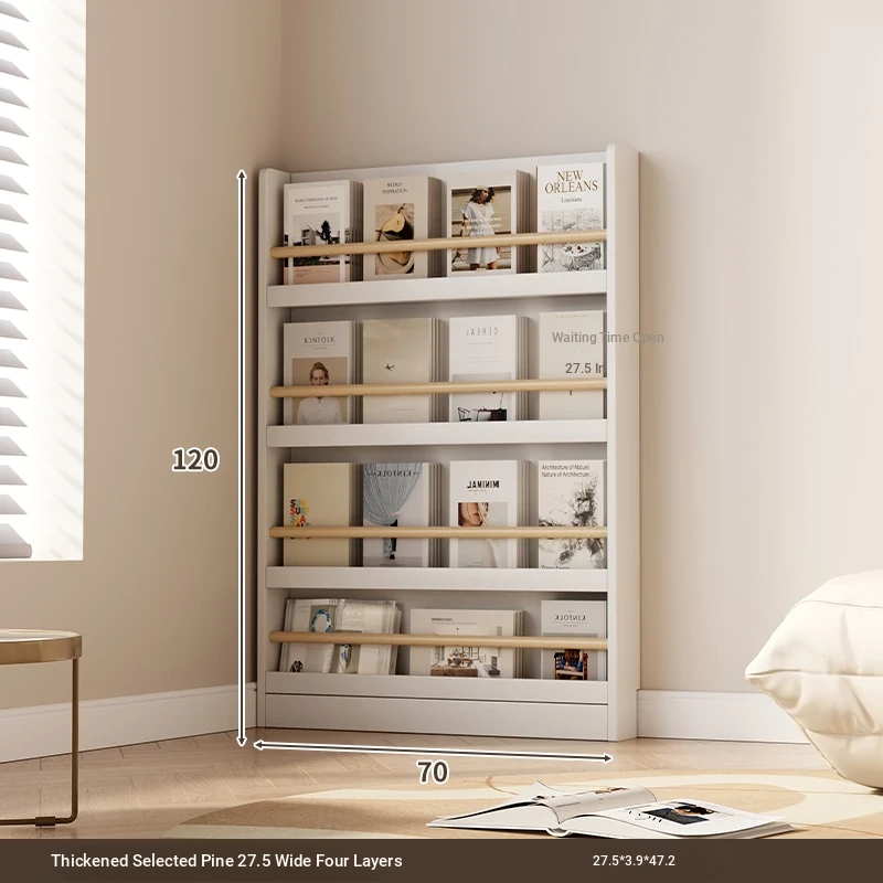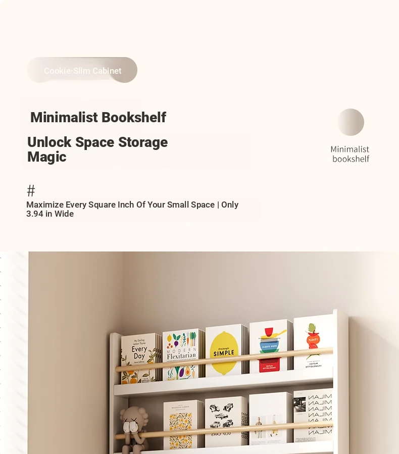 Slim Wall-Mounted Floor Bookshelf: Stylish Wooden Storage Rack for Kids – Space-Saving Multi-Layer Picture Book Organizer for Small Areas, Perfect for Hallways or Behind Doors!