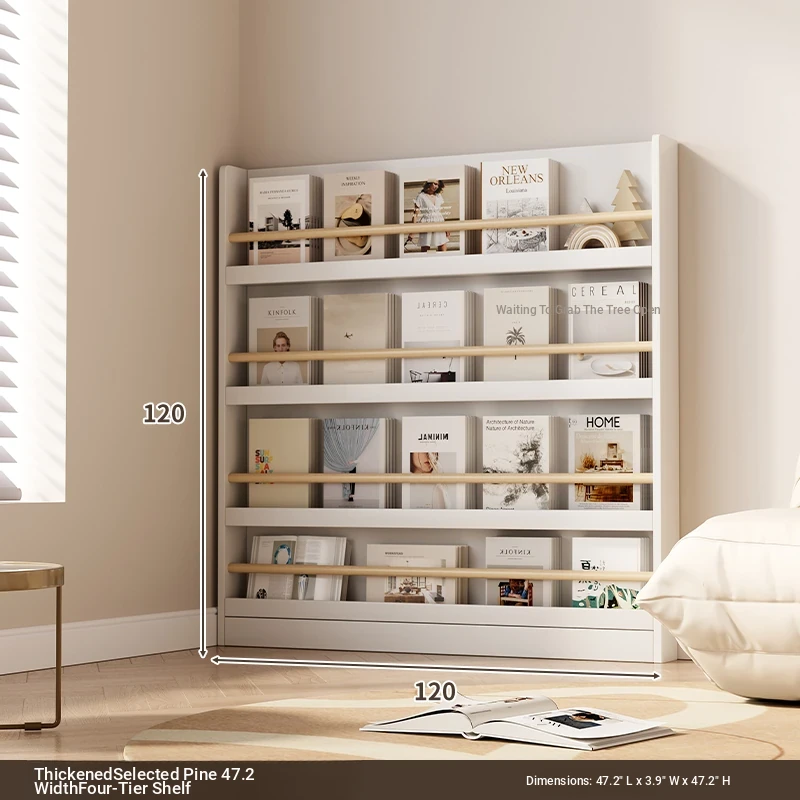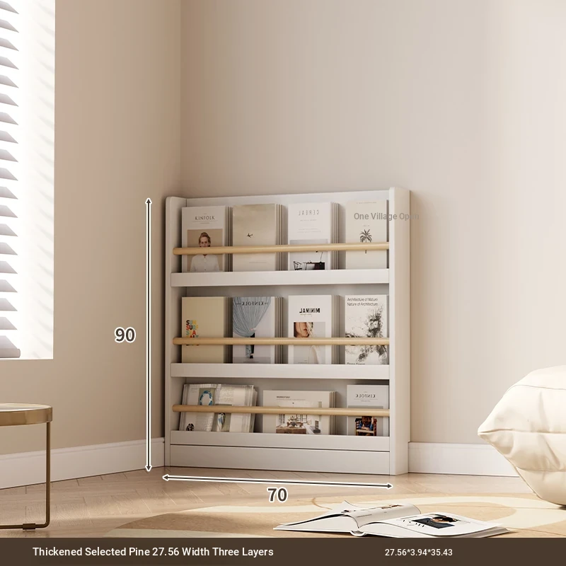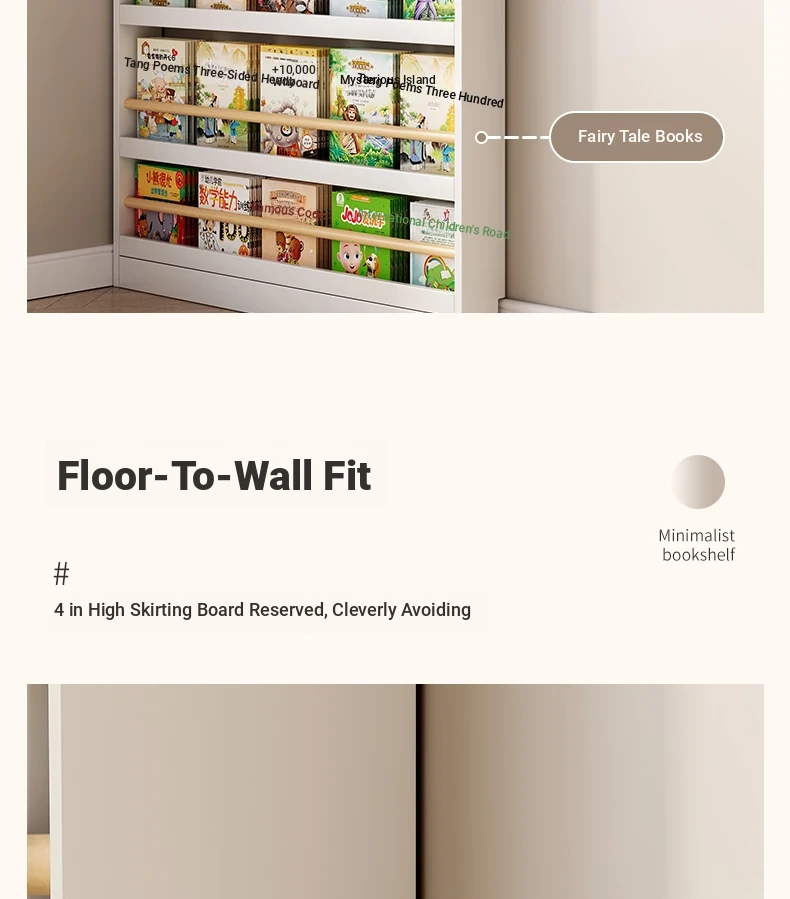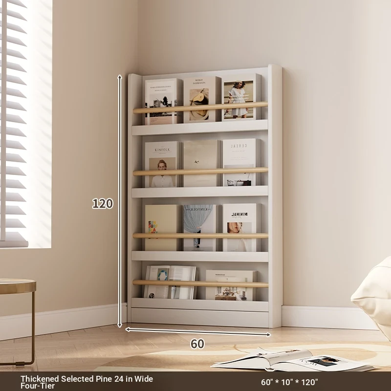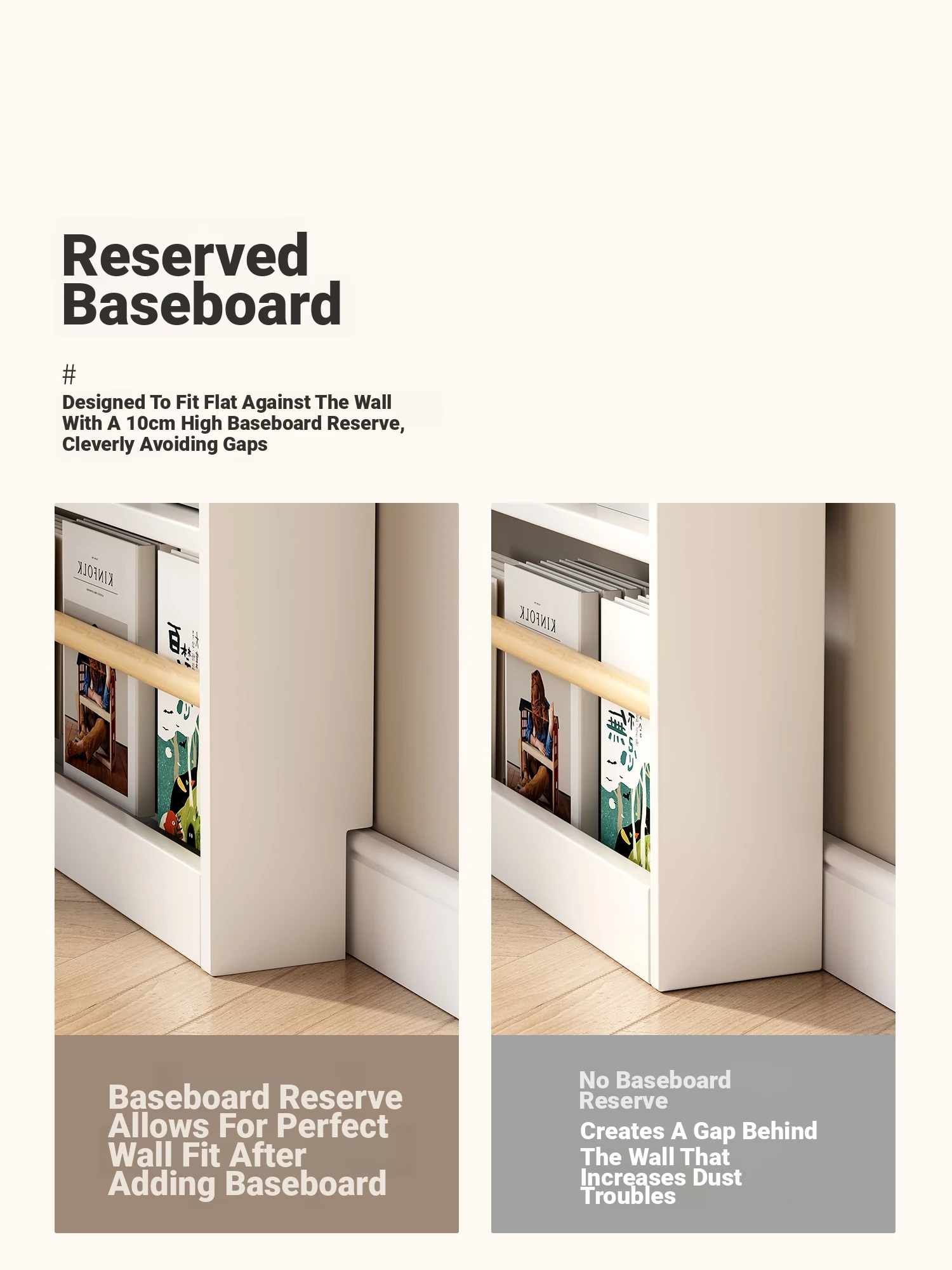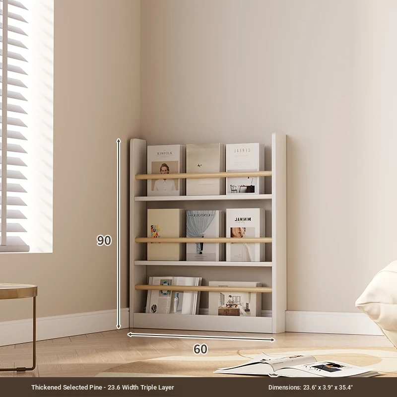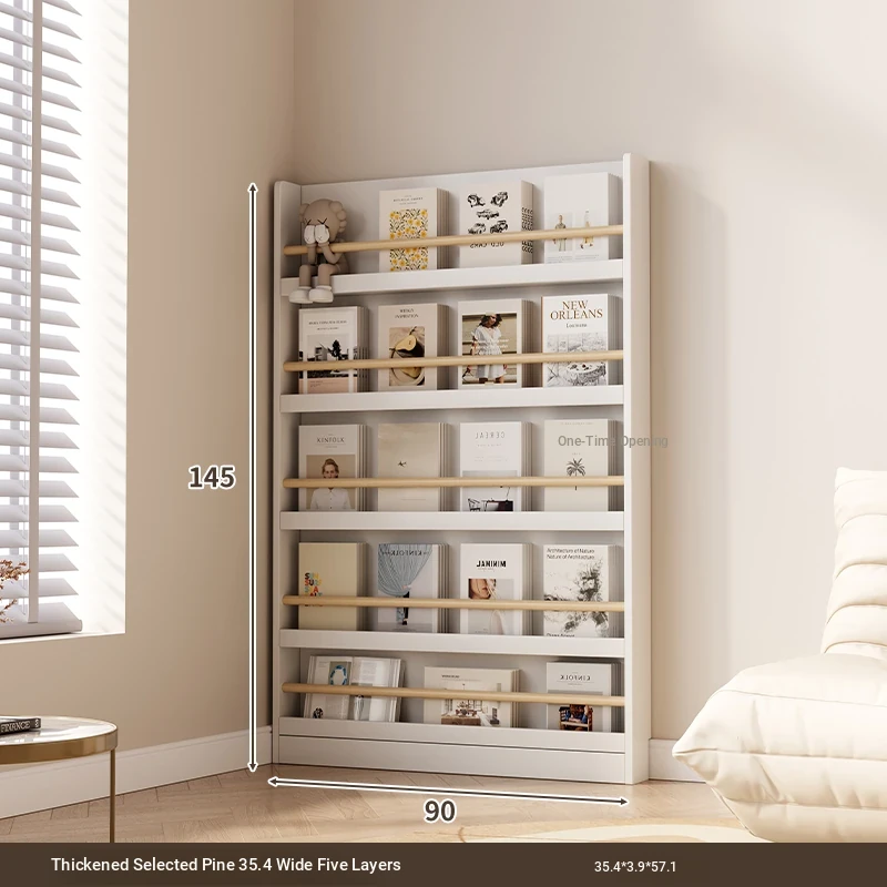 Slim Wall-Mounted Floor Bookshelf: Stylish Wooden Storage Rack for Kids – Space-Saving Multi-Layer Picture Book Organizer for Small Areas, Perfect for Hallways or Behind Doors!