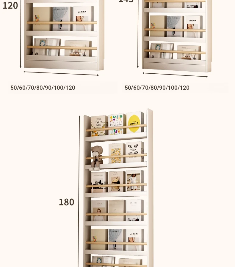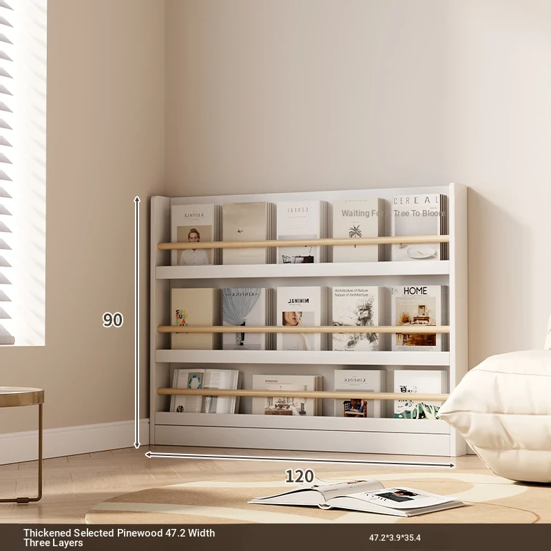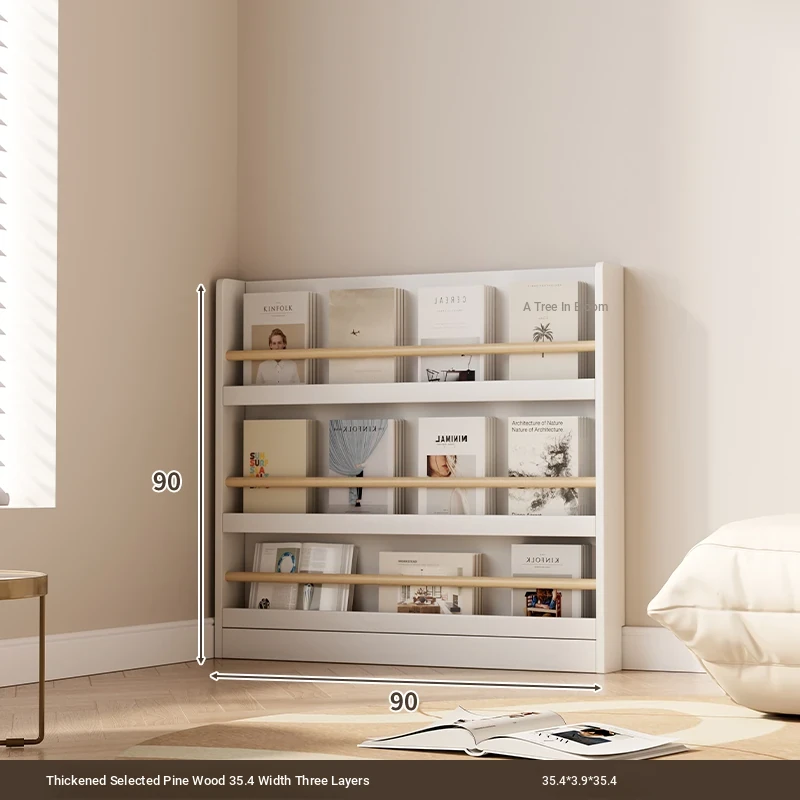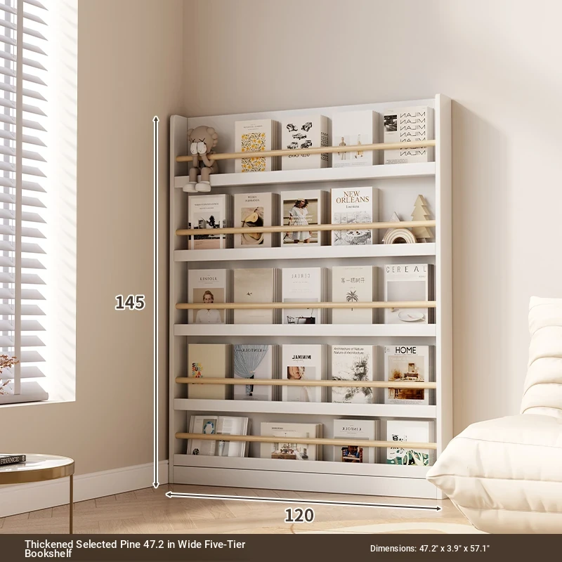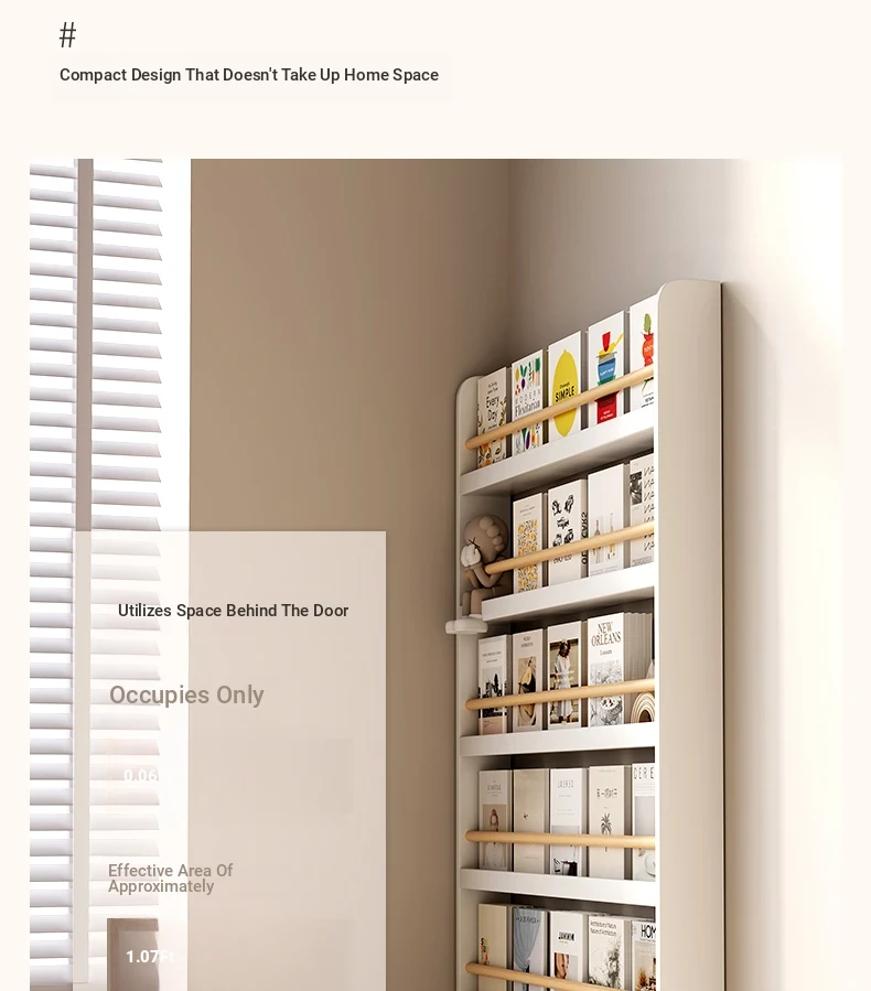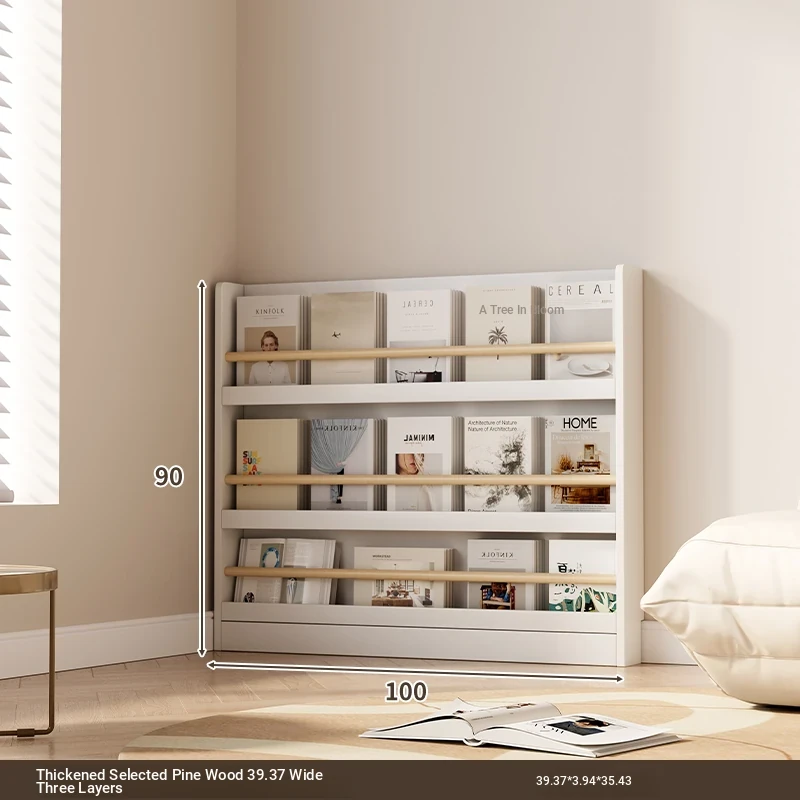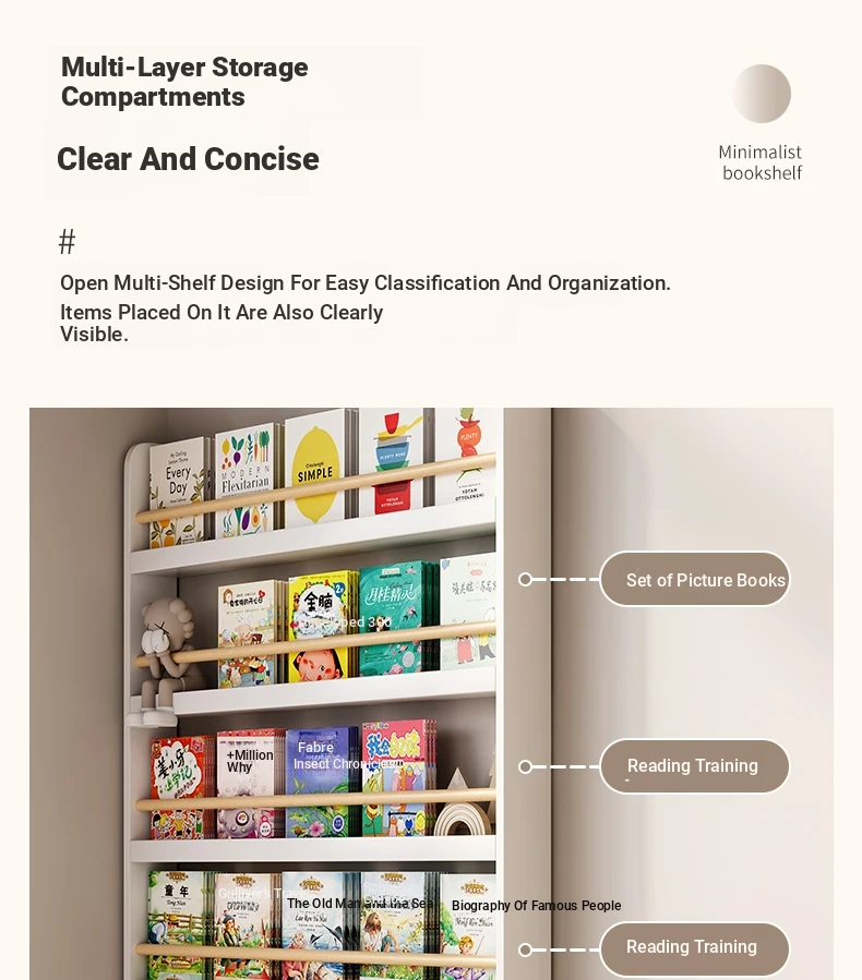 Slim Wall-Mounted Floor Bookshelf: Stylish Wooden Storage Rack for Kids – Space-Saving Multi-Layer Picture Book Organizer for Small Areas, Perfect for Hallways or Behind Doors!