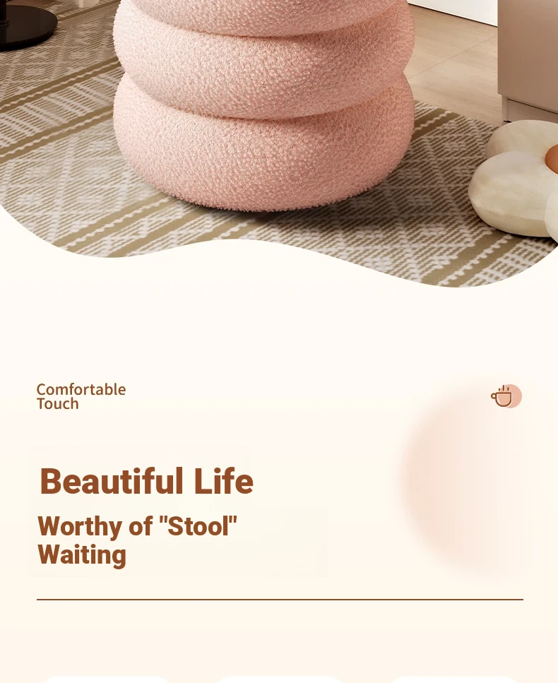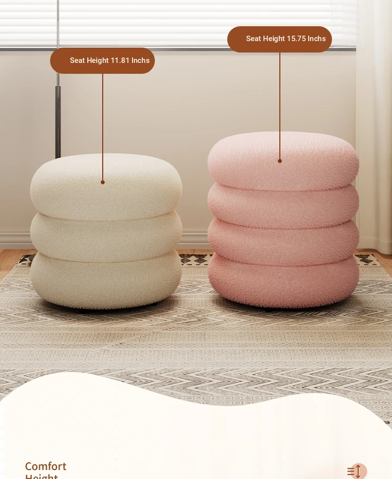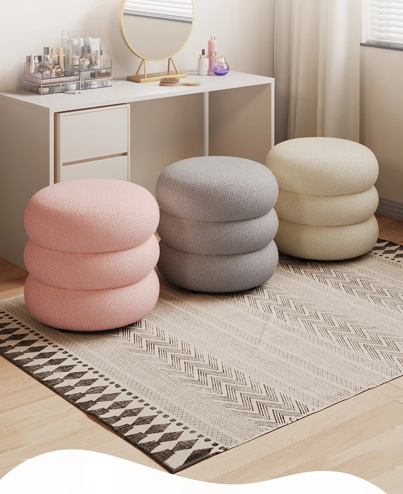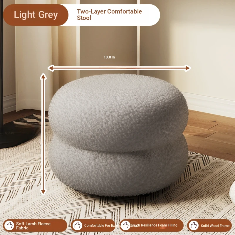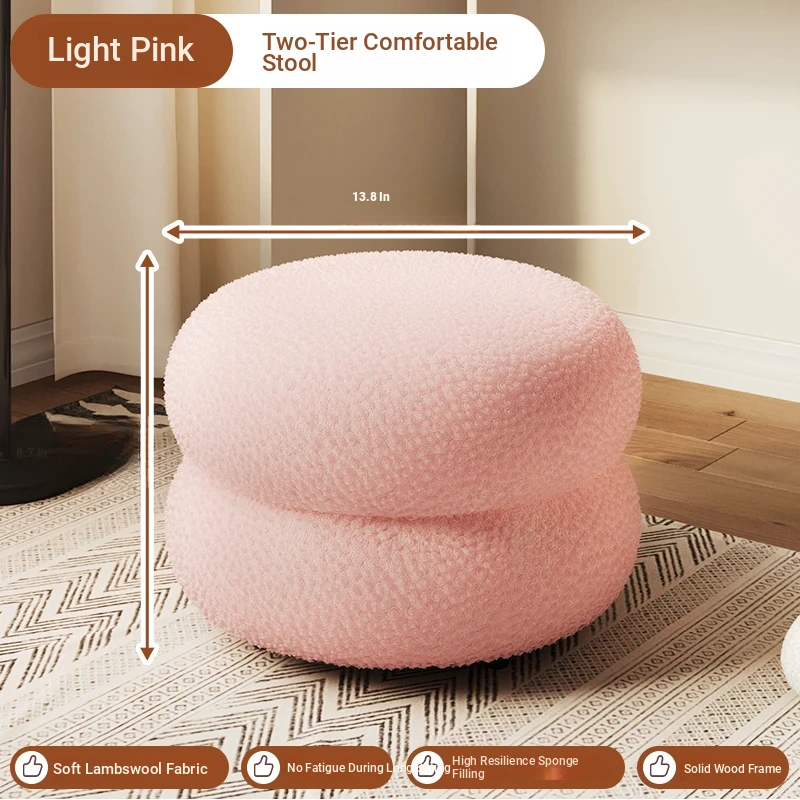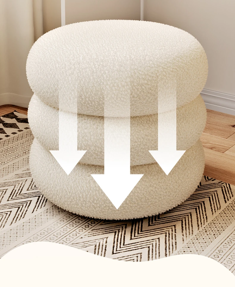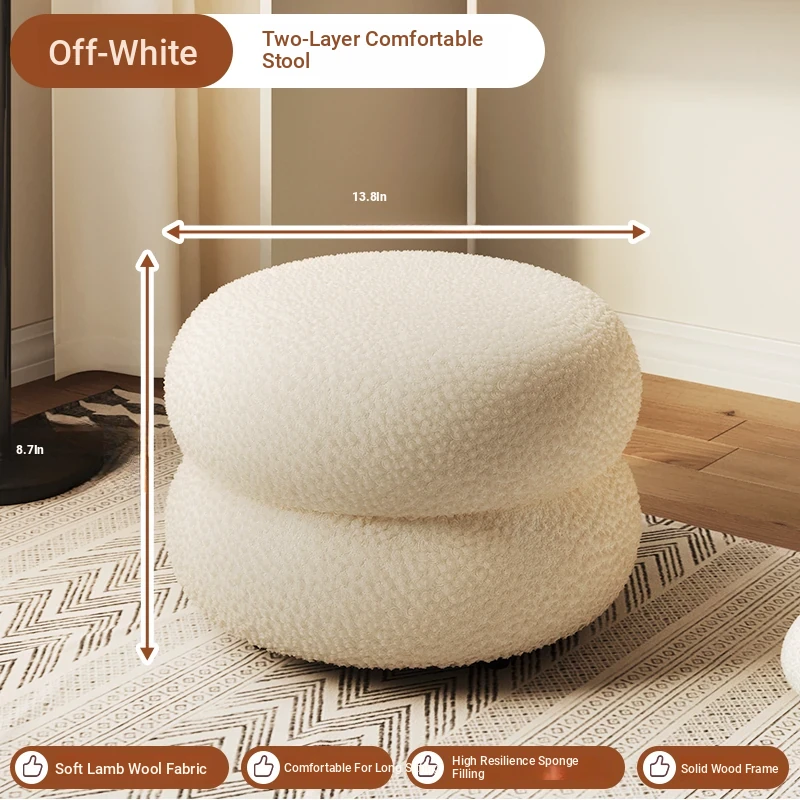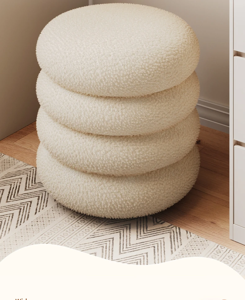 Trendy Cozy Stool – Minimalist Round Ottoman for Living Room, Soft Lambswool Upholstery, Perfect for Sofa Side, Versatile and Creative Design for Home Decor