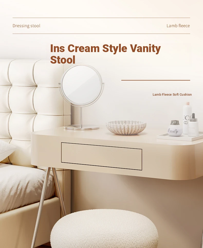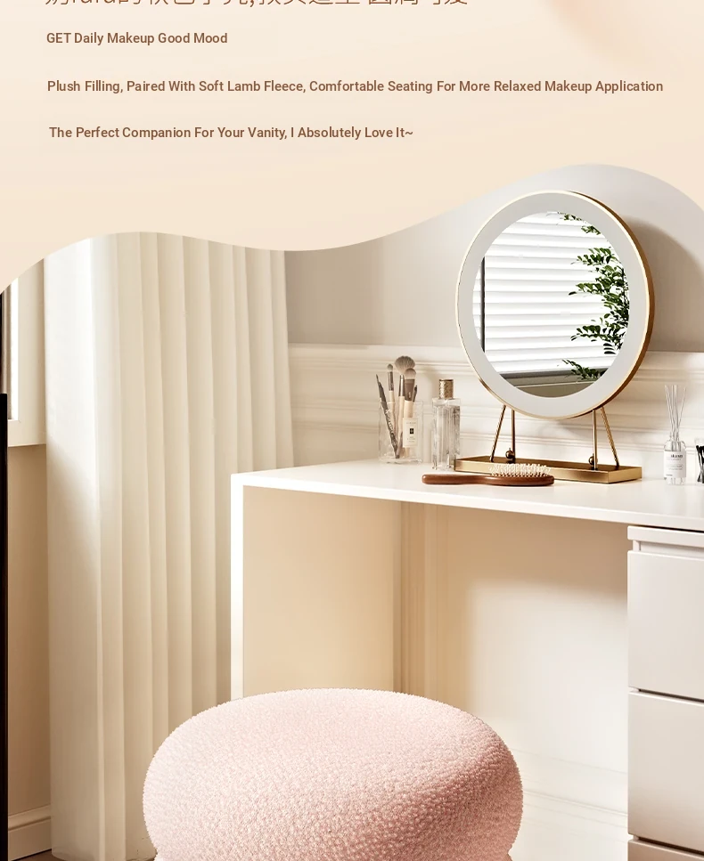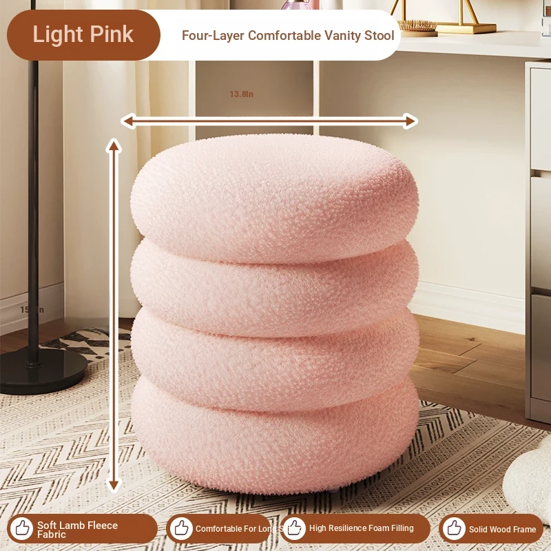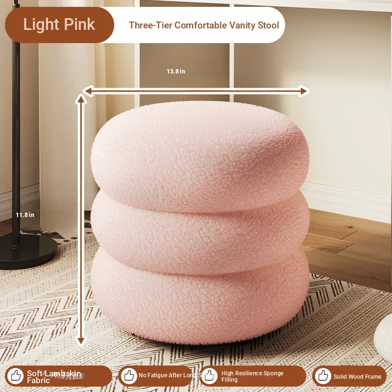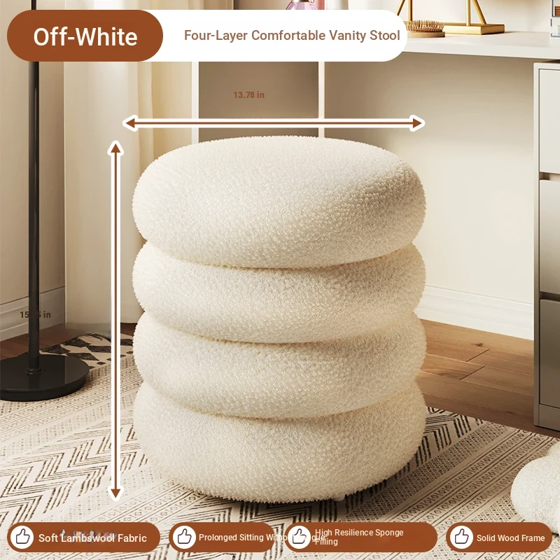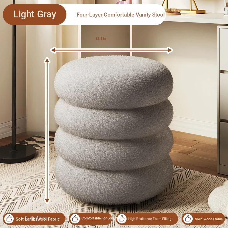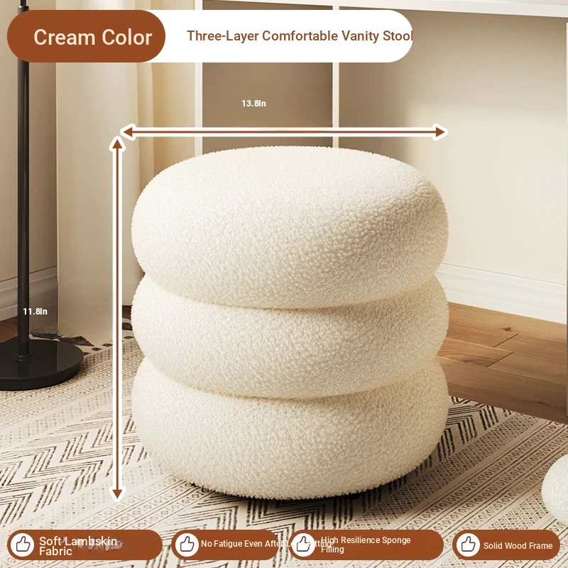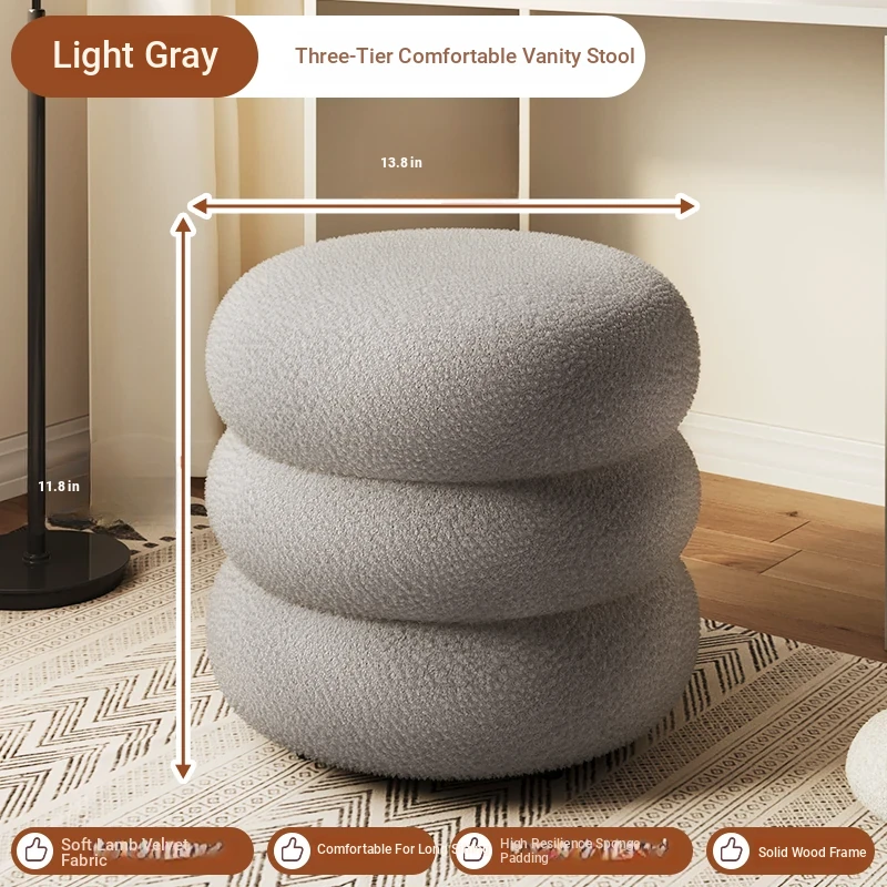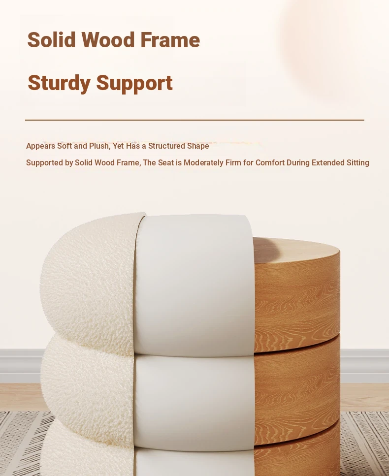 Trendy Cozy Stool – Minimalist Round Ottoman for Living Room, Soft Lambswool Upholstery, Perfect for Sofa Side, Versatile and Creative Design for Home Decor