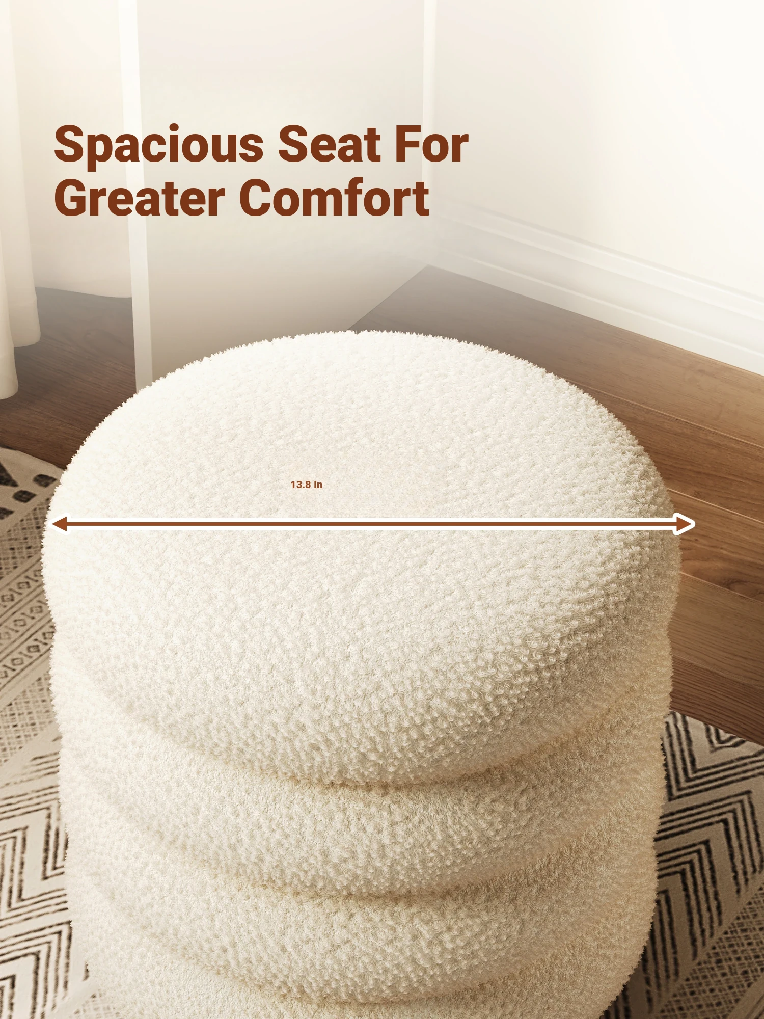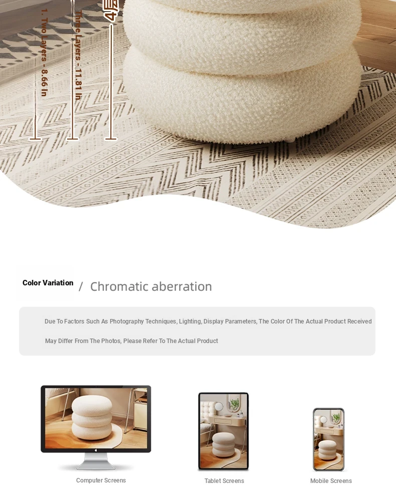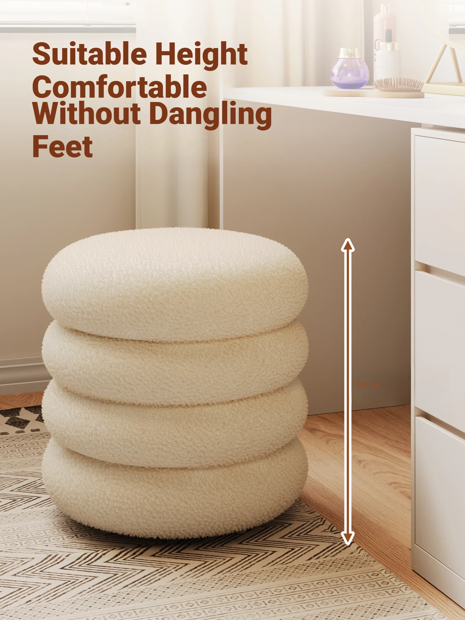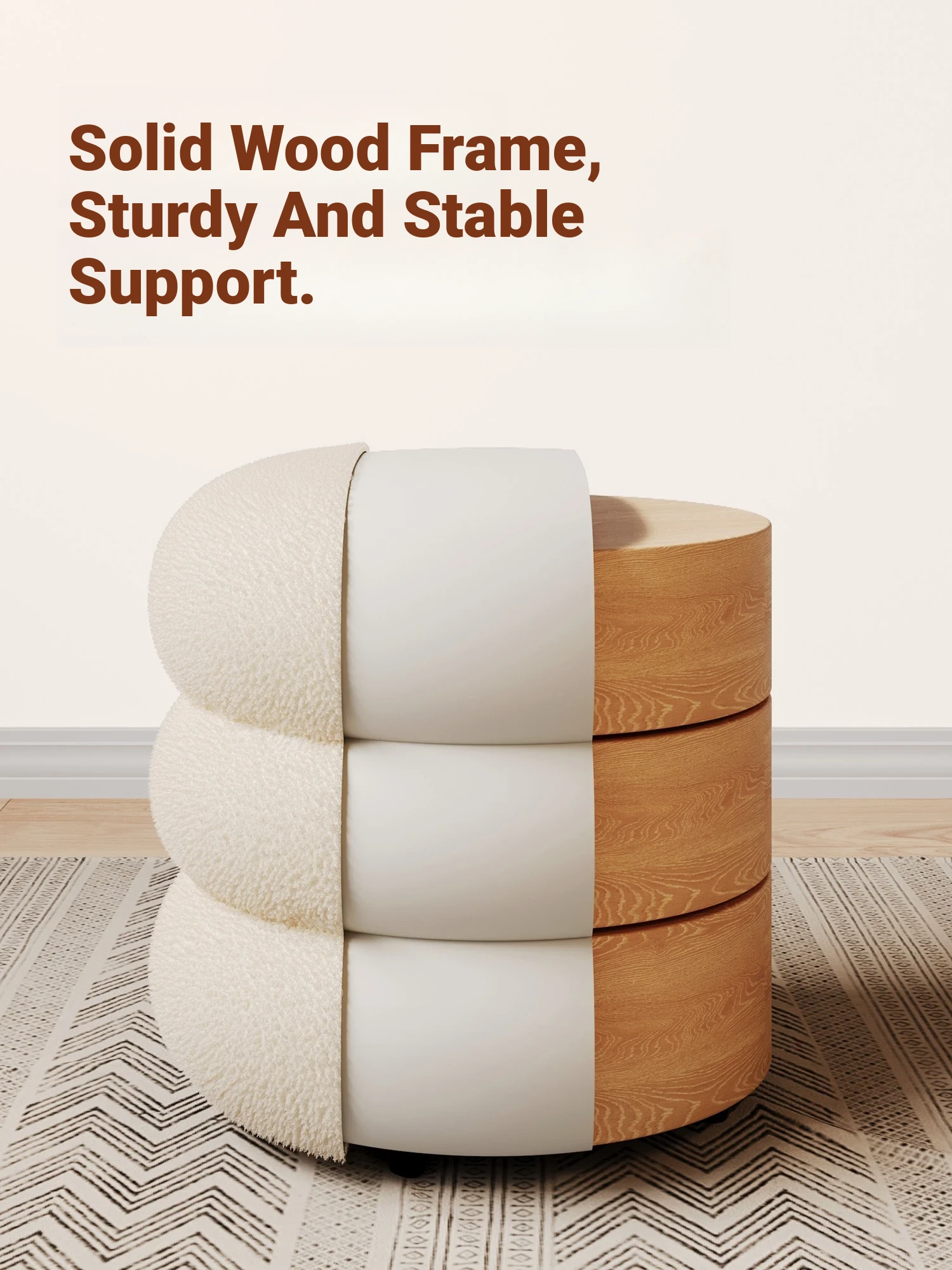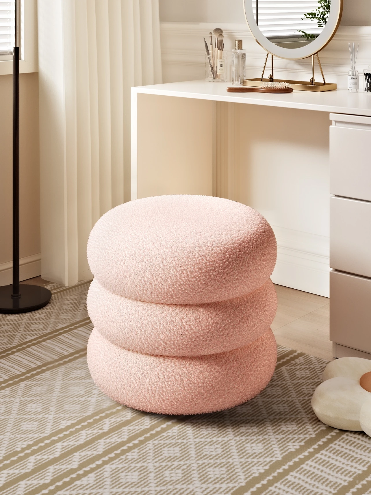 Trendy Cozy Stool – Minimalist Round Ottoman for Living Room, Soft Lambswool Upholstery, Perfect for Sofa Side, Versatile and Creative Design for Home Decor
