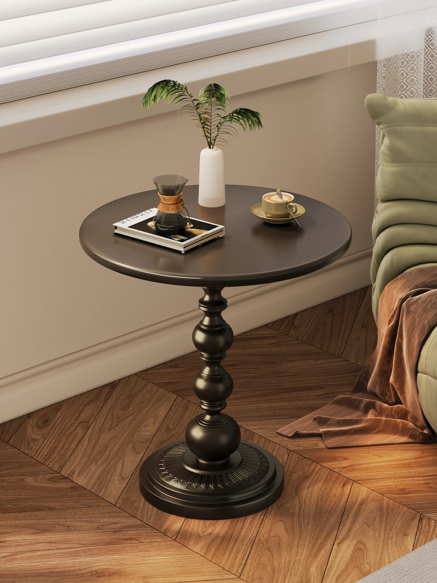 軽奢スタイルのソファサイドテーブル – リビングルームにぴったりなレトロデザインの小さなティーテーブル!アイアン製の収納棚付きで、おしゃれなベッドサイドテーブルやバルコニーのラウンドテーブルとしても最適です。
